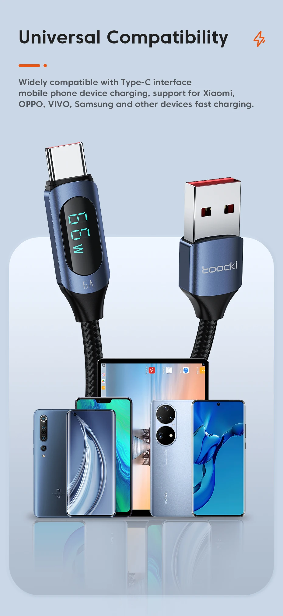USB-C flojo de carga rápida Digital DisplayerCable de datos, transmisión de alta velocidad, E-Marker Smart Ship.Power Displayusted puede conocer claramente el estado de carga y la velocidad de carga. Salvajemente compatible con dispositivos de tipo C.