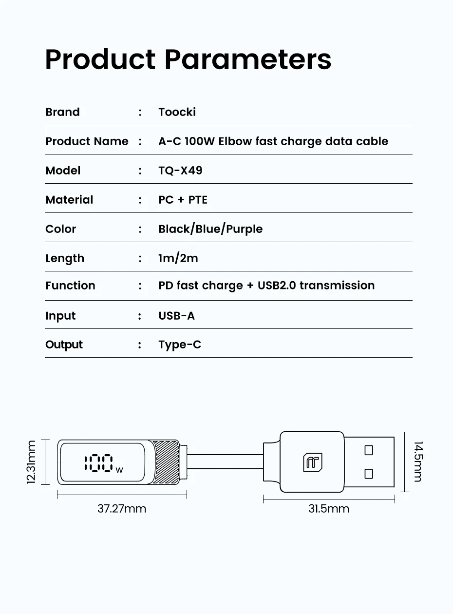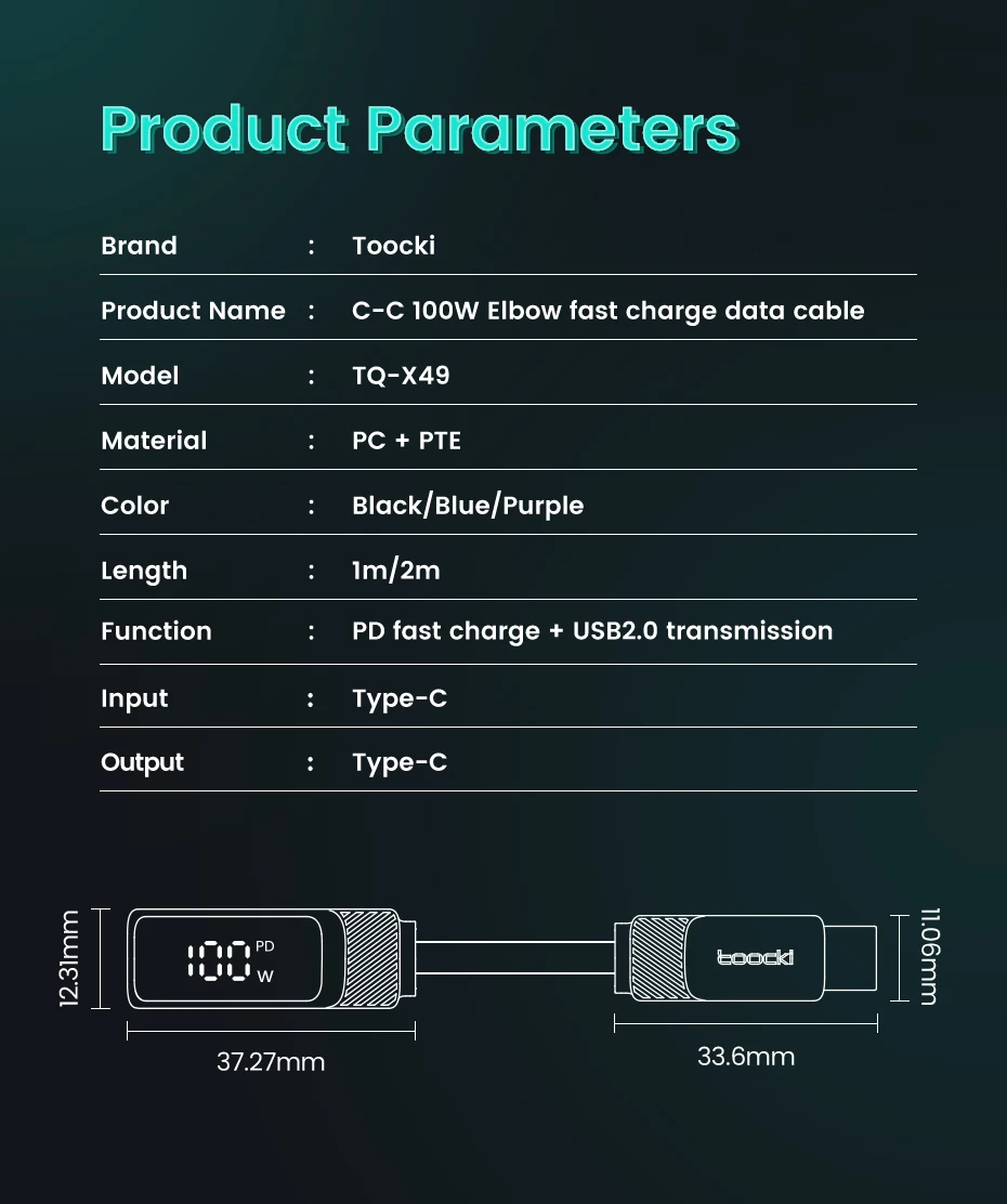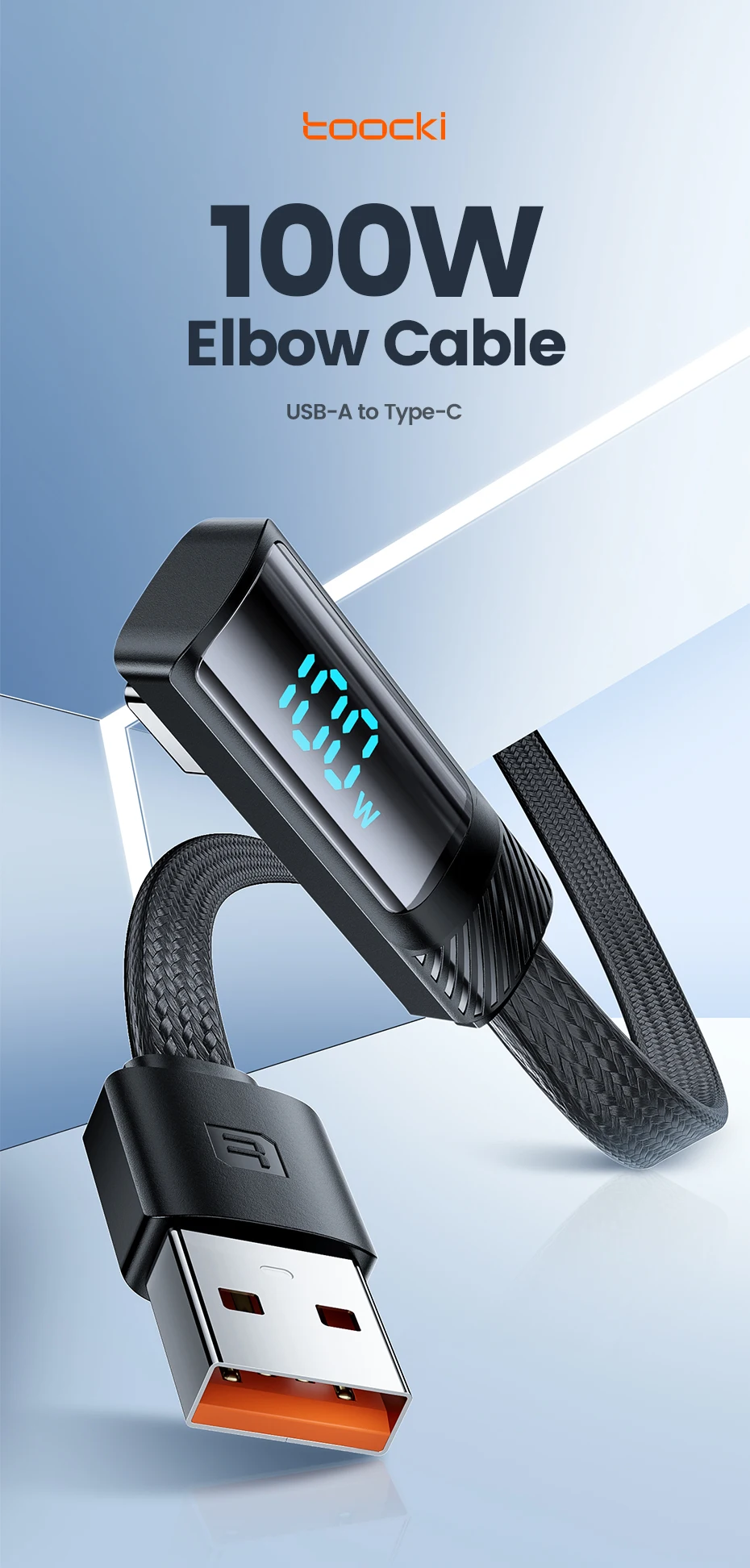 Comprar Toocki Cable USB tipo C 90 grados 66W/100W carga rápida para Huawei P50 P40 Honor Oneplus POCO Cable de pantalla Cable de datos tipo C