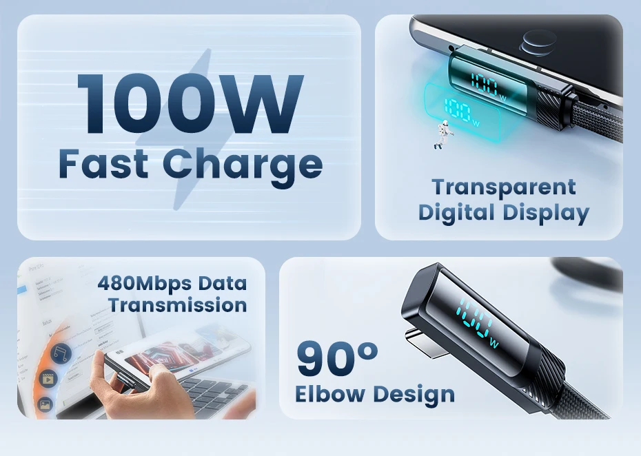 Nombre: Cable de datos de carga rápida con codo USB-C a tipo C de 100 W