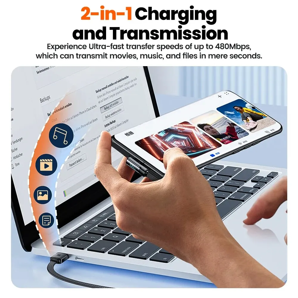 Nombre: Cable de datos de carga rápida de codo USB-A a USB-C 100W