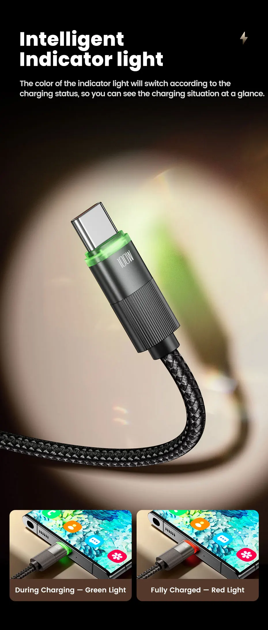 ✅Luz indicadora inteligente: el color de la luz indicadora cambiará de acuerdo con el estado de carga, para que pueda ver la situación de carga de un vistazo.