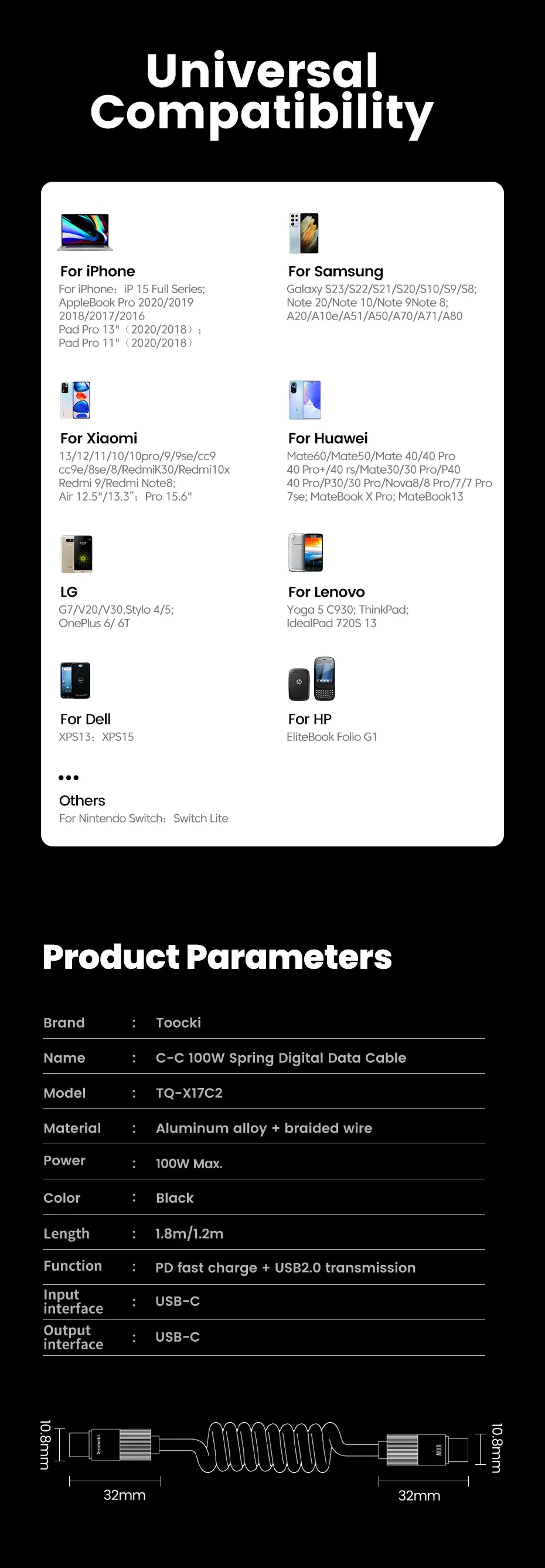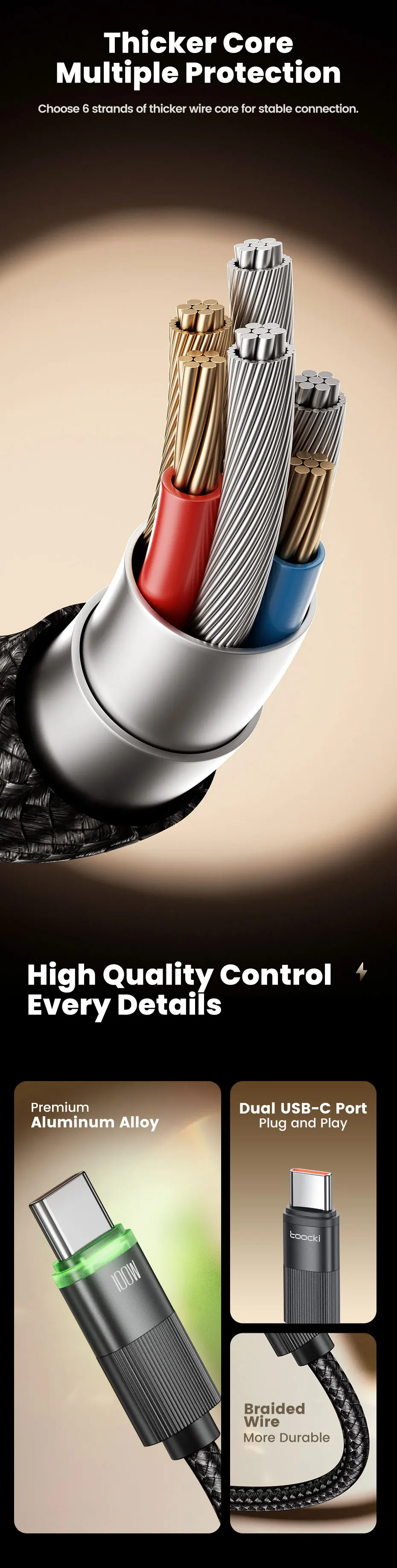 Comprar Toocki-Cable USB tipo C a tipo C, cargador de coche de carga rápida, PD, 100W, 5A, para iPhone 15, 12 Xiaomi, Samsung S23, Macbook