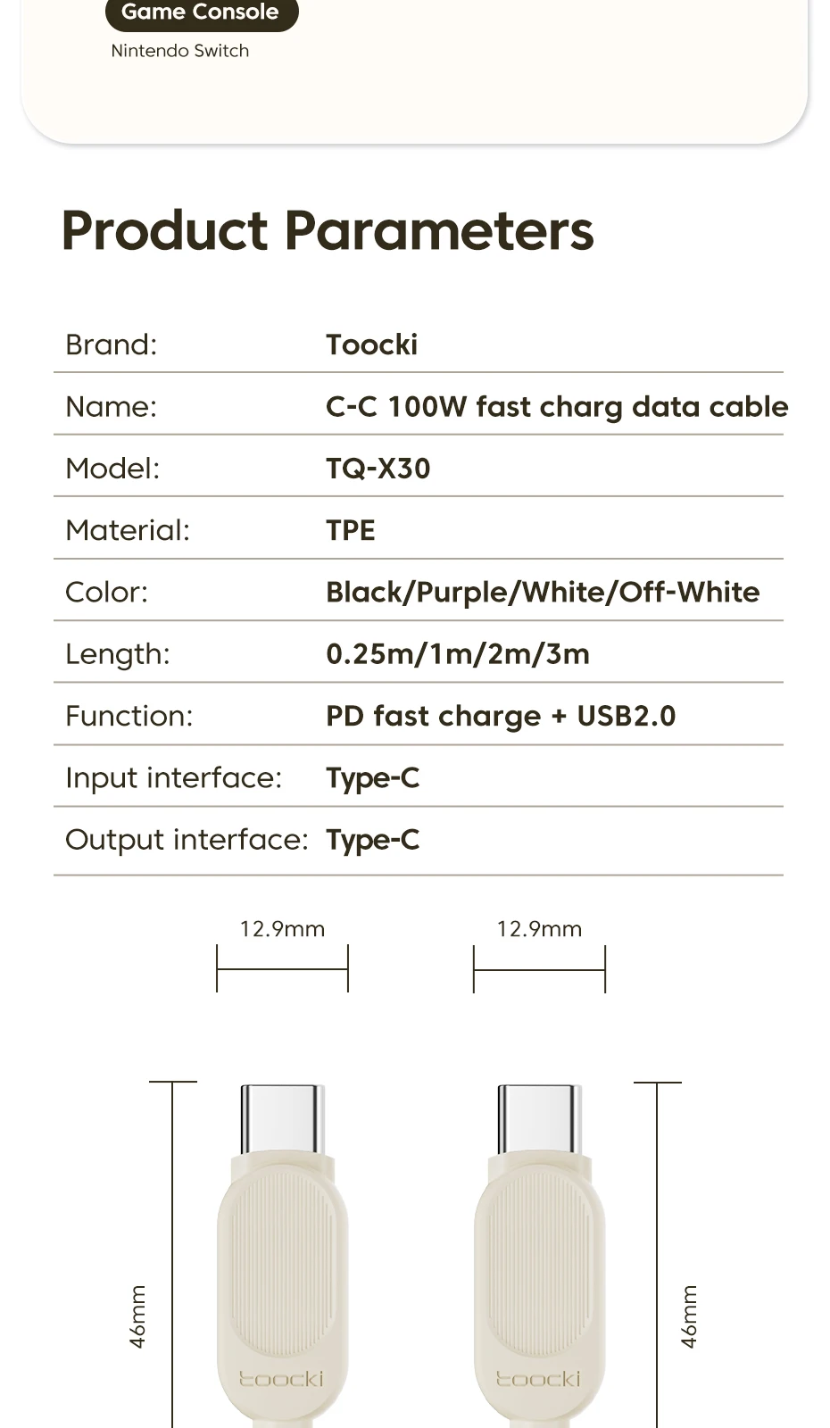 Toocki-Cable USB tipo C a tipo C para móvil, cargador de carga rápida de 100W, compatible con Xiaomi POCO, Samsung, Huawei, PD, Cable de datos tipo C de USB-C a tipo C