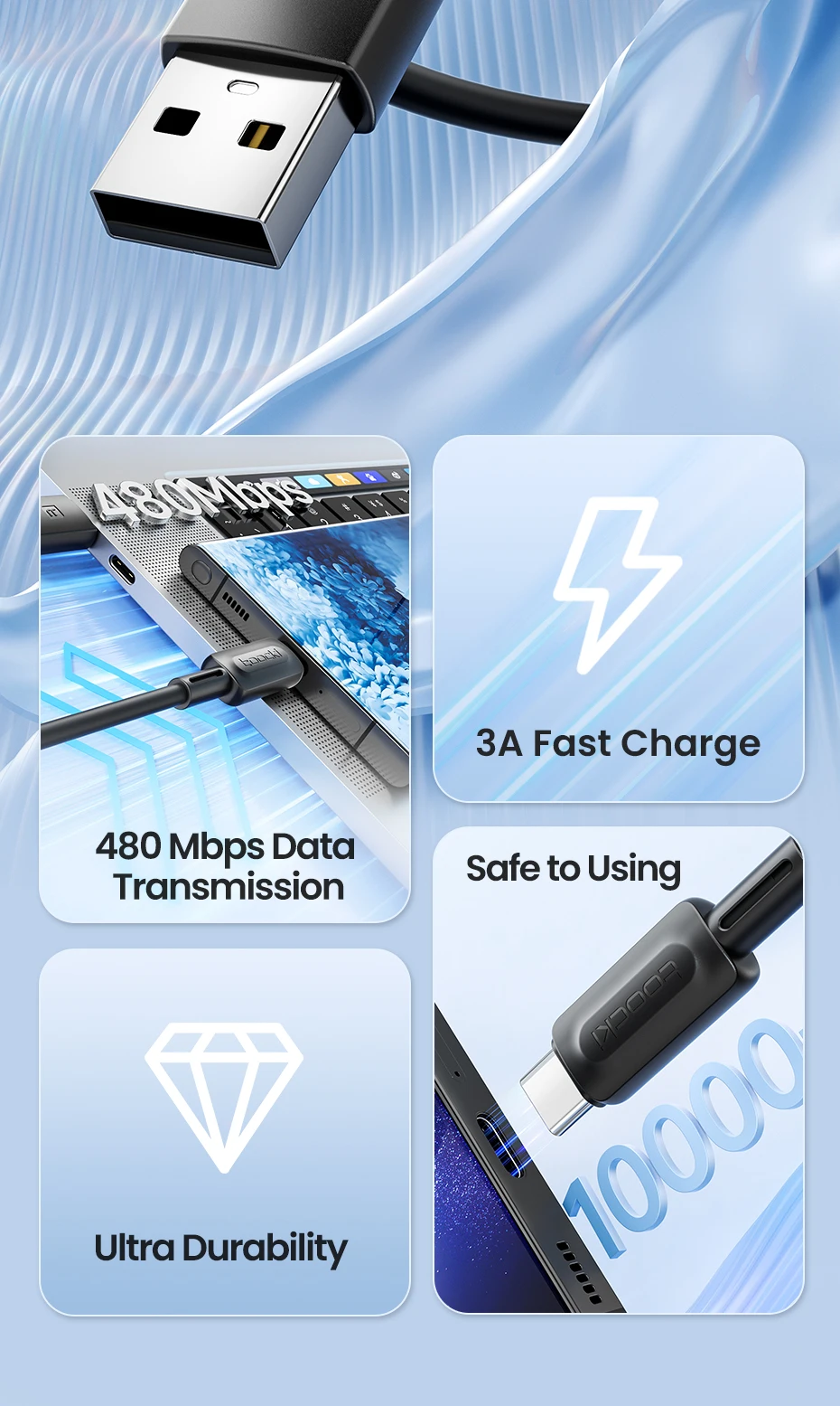 Nombre del producto: Cable 3A de carga de datos, de tipo C, de tipo C