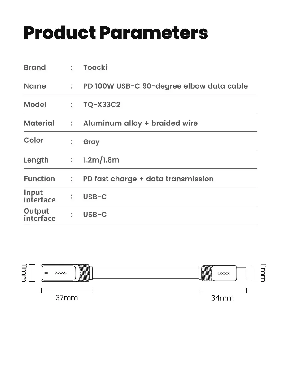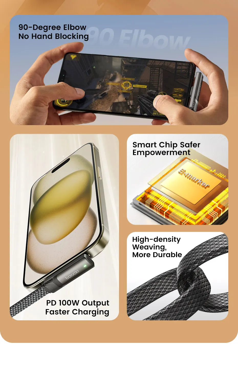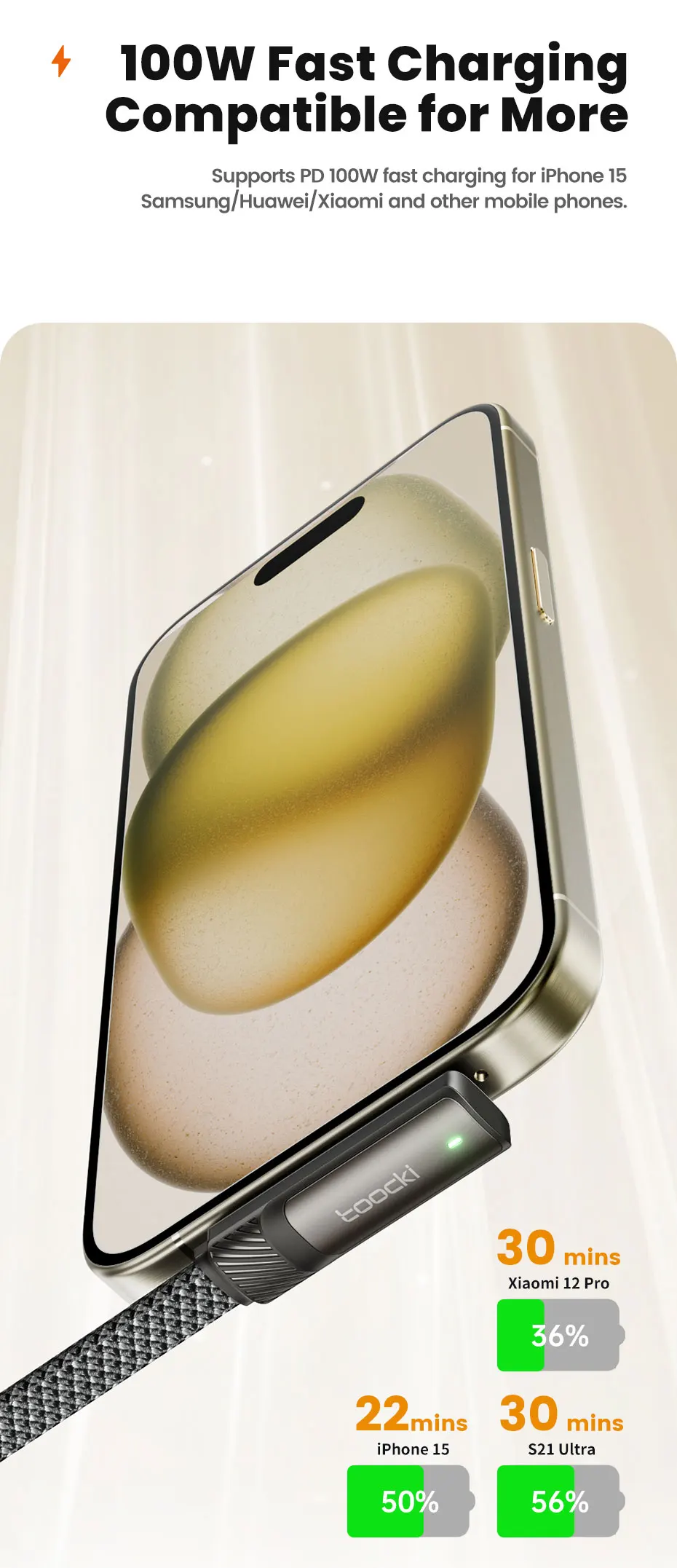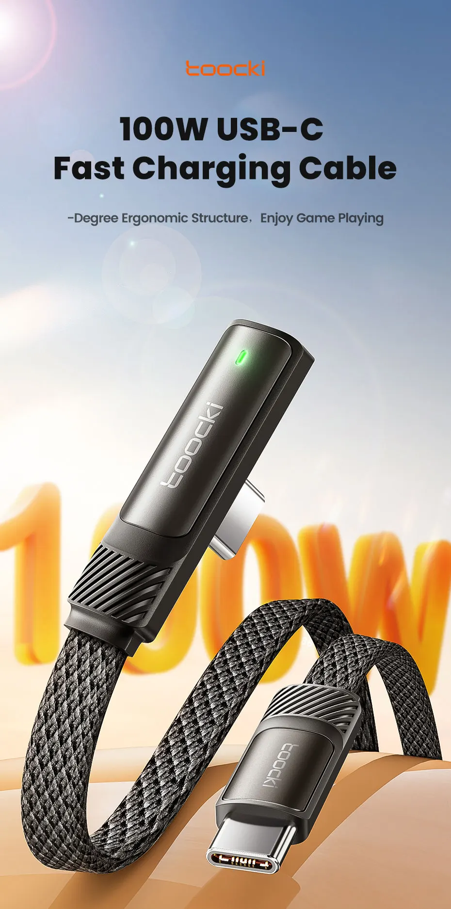 Comprar Toocki-Cable USB tipo C de carga rápida, Cable tipo C de 100W, codo de 90 grados, 5A, para iPhone 15, Huawei, Xiaomi 12, 13, Macbook