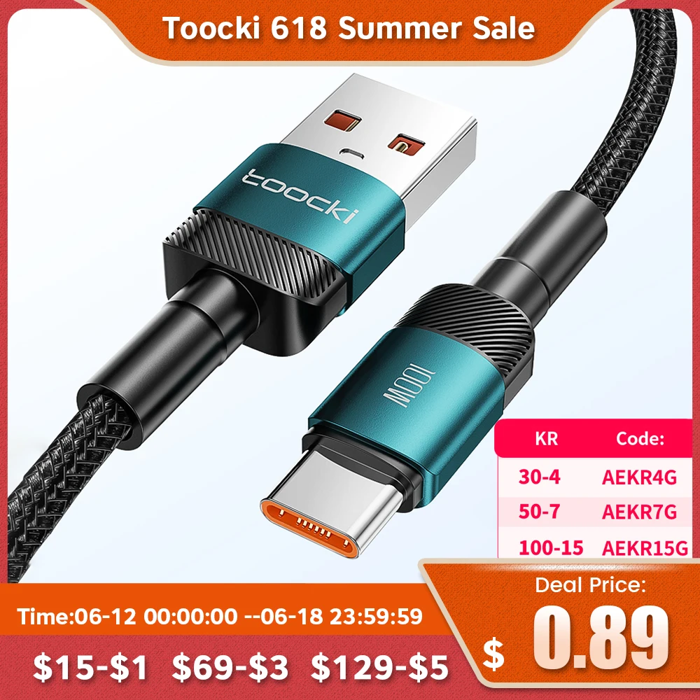 Comprar Toocki-Cable USB tipo C de carga rápida, cargador de 100W para Huawei P40, P30, Realme, Oppo, Oneplus, Cable de datos Poco