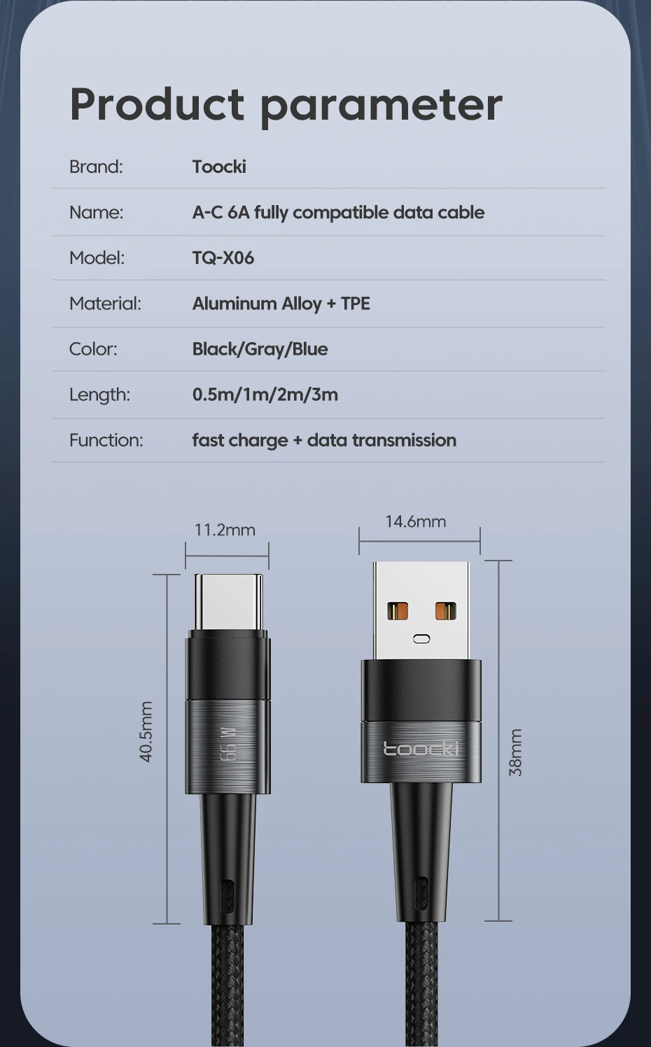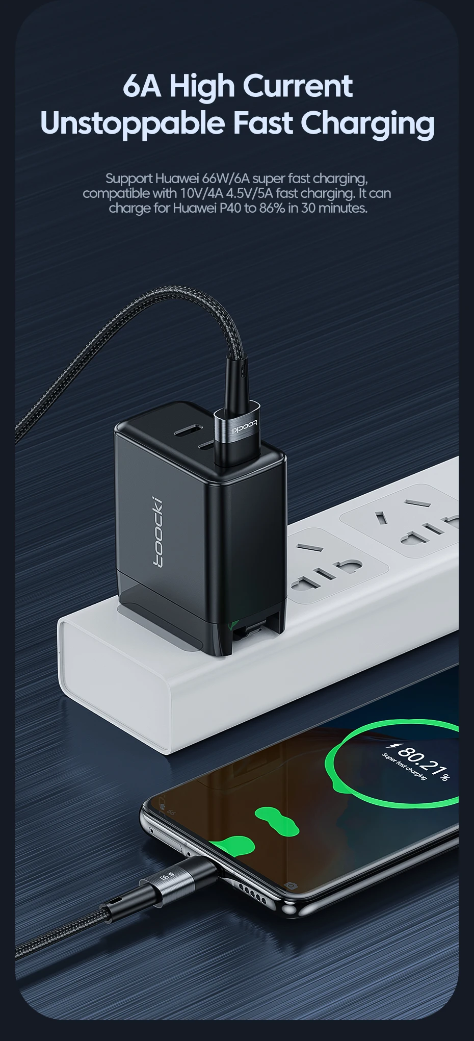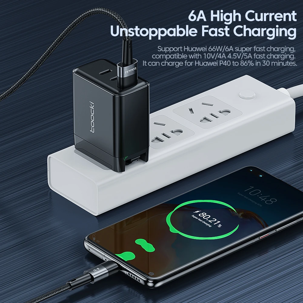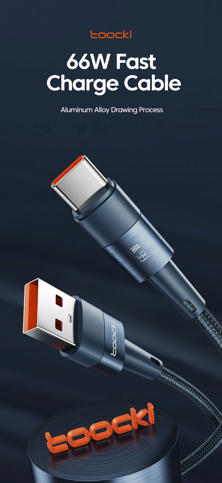 Comprar Toocki-Cable USB tipo C de carga rápida para móvil, cargador de datos de Realme, 6A, 66W, para Huawei Mate 40, P30, Xiaomi 11, Oppo R11, Oneplus USB-C