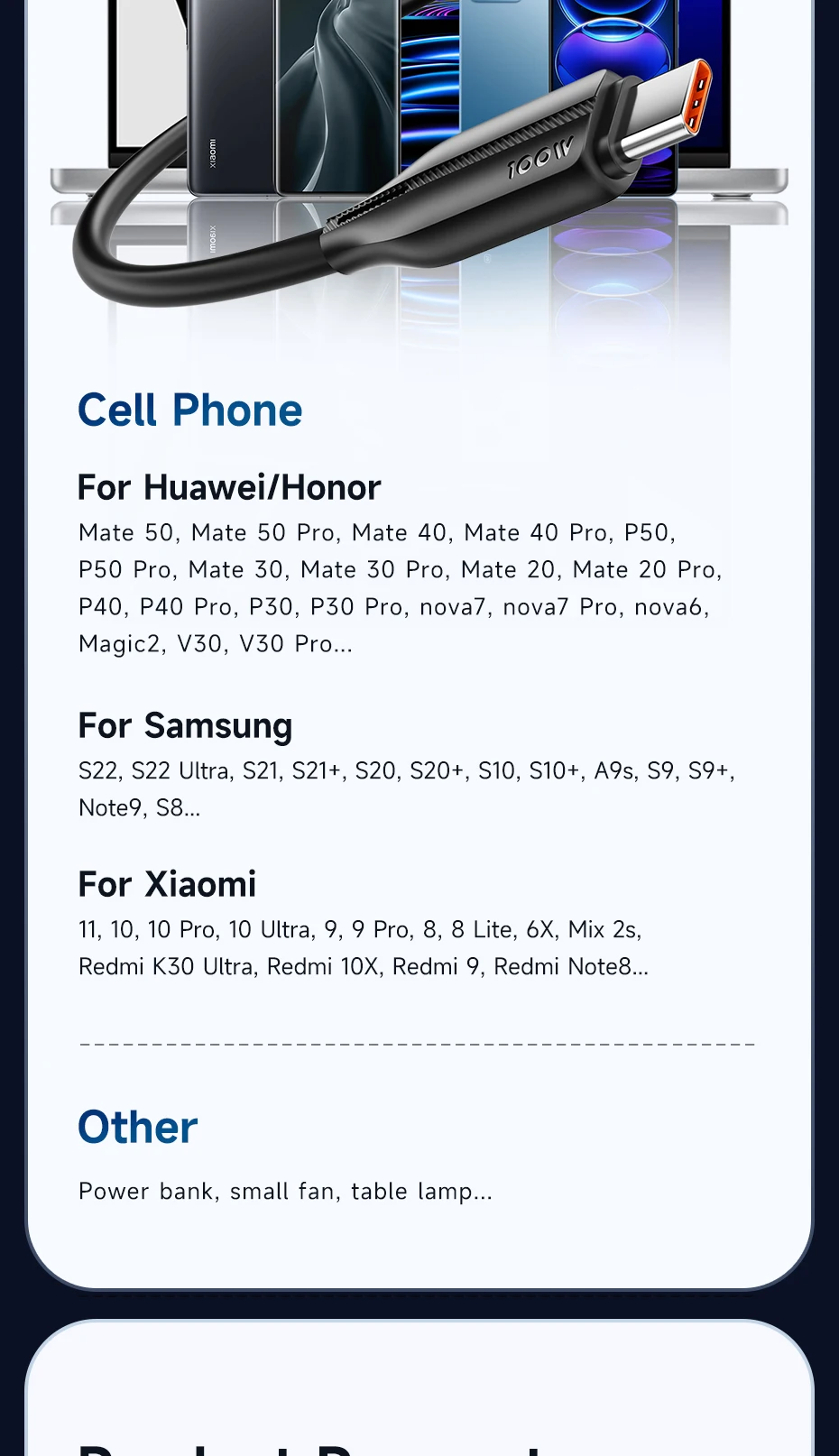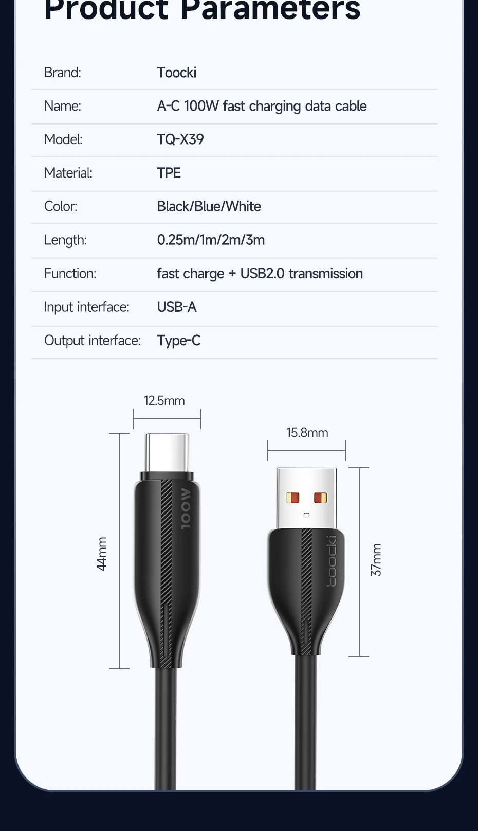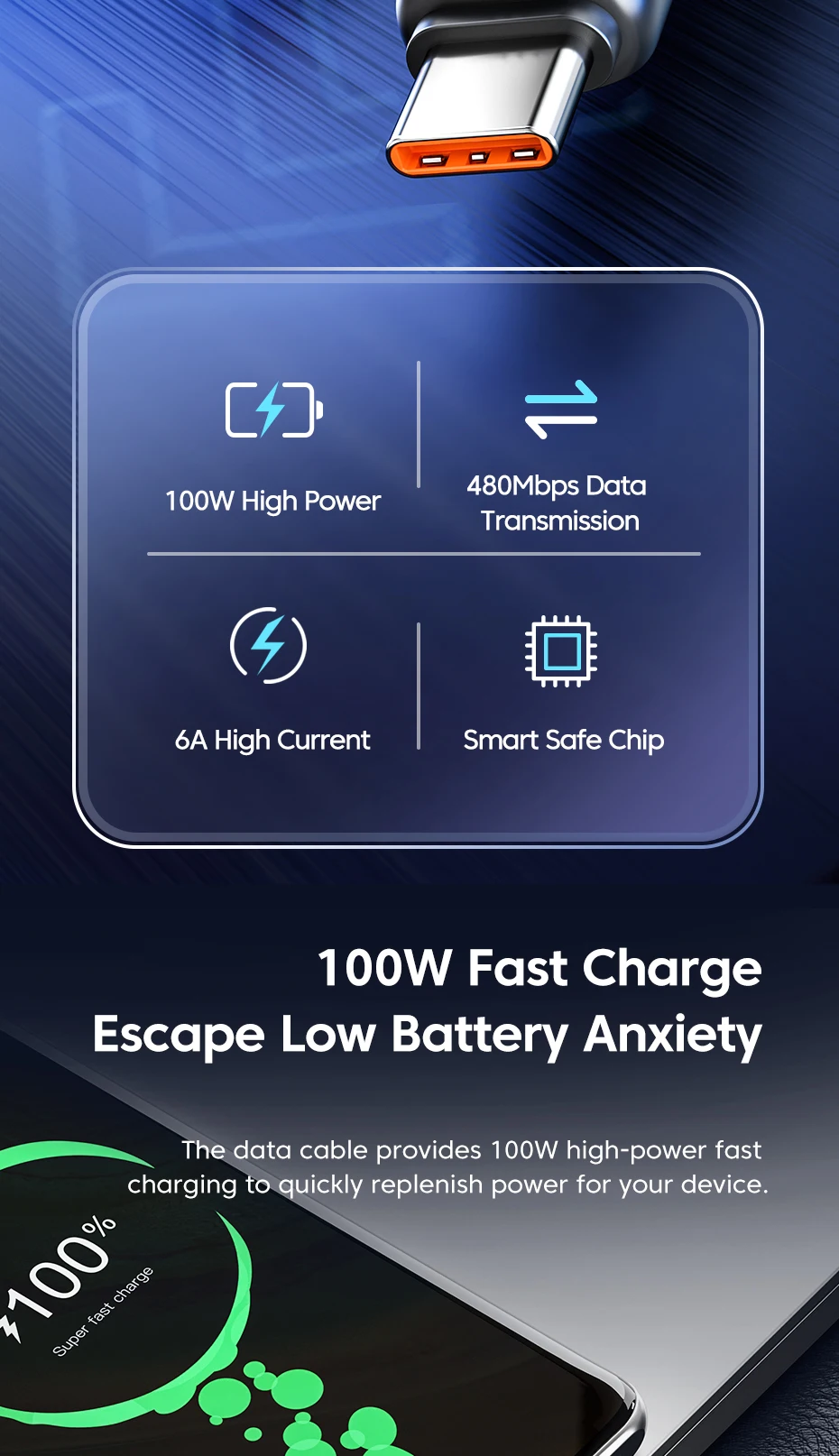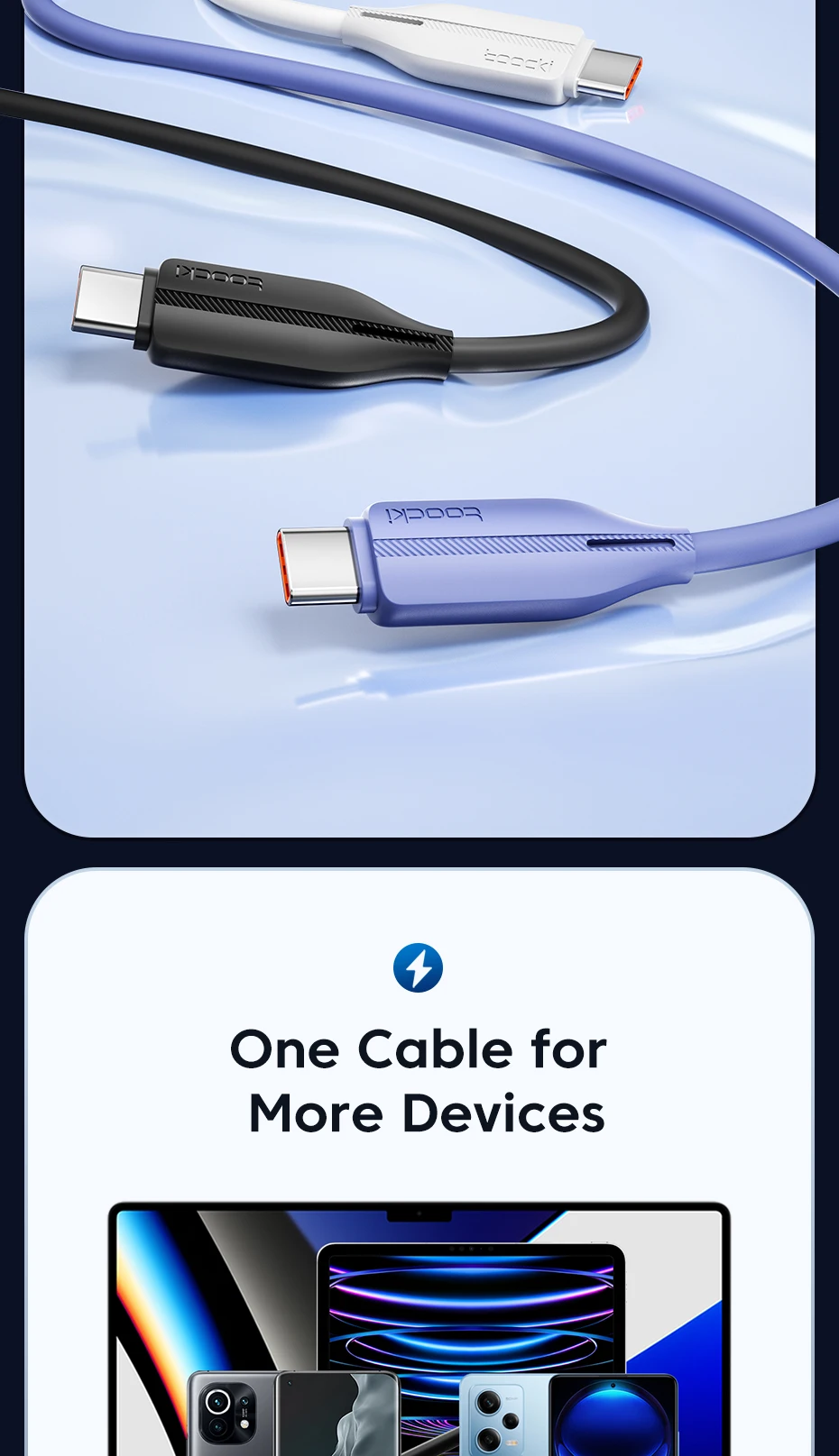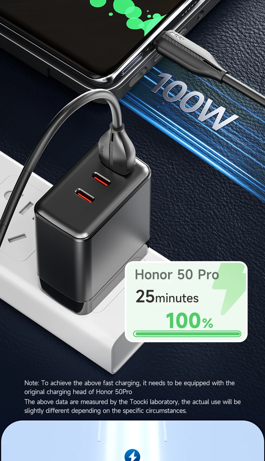 Comprar Toocki-Cable USB tipo C de carga rápida para móvil, cargador de teléfono de 6A, 100W, para Huawei P50, P40, Xiaomi, Samsung, Poco