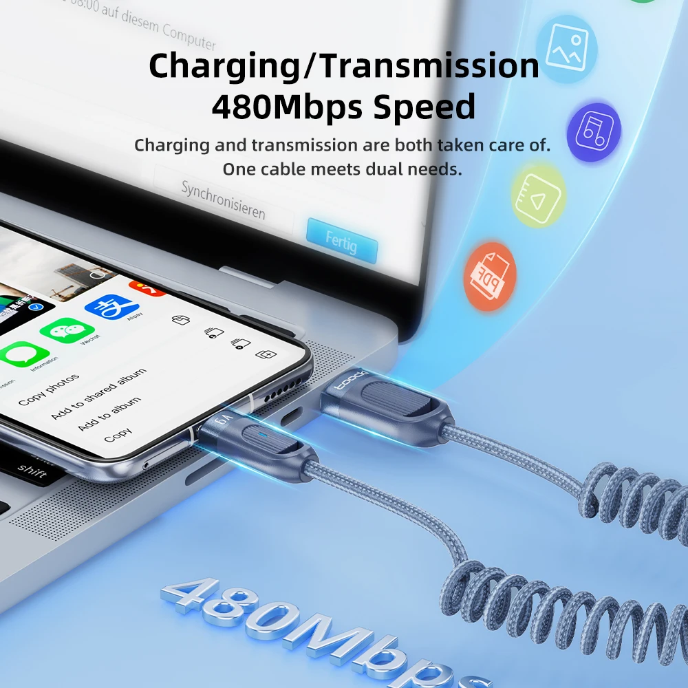 Núcleo interno de TPU de alta elasticidad, no es fácil de anudar y enredar, Diga adiós a los problemas de almacenamiento. Cuerpo exterior trenzado, duradero y resistente al desgaste.