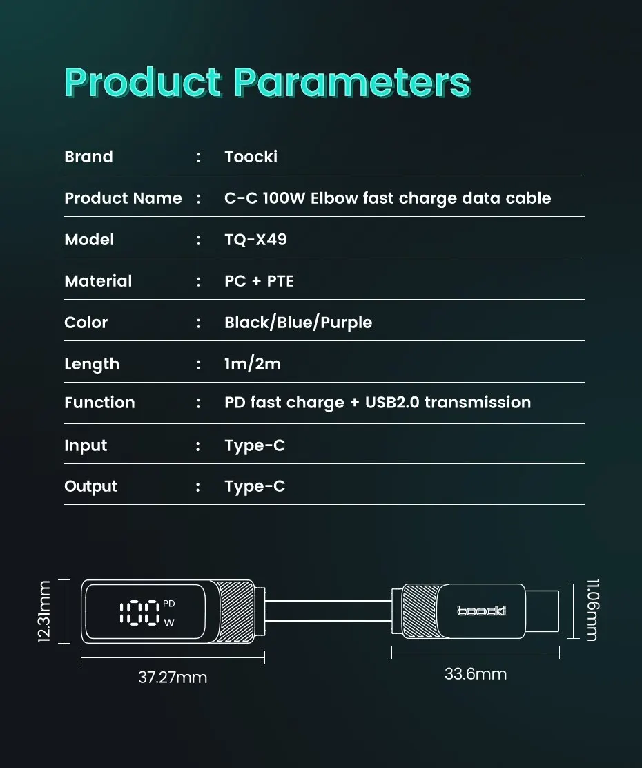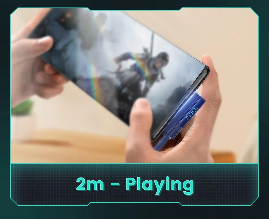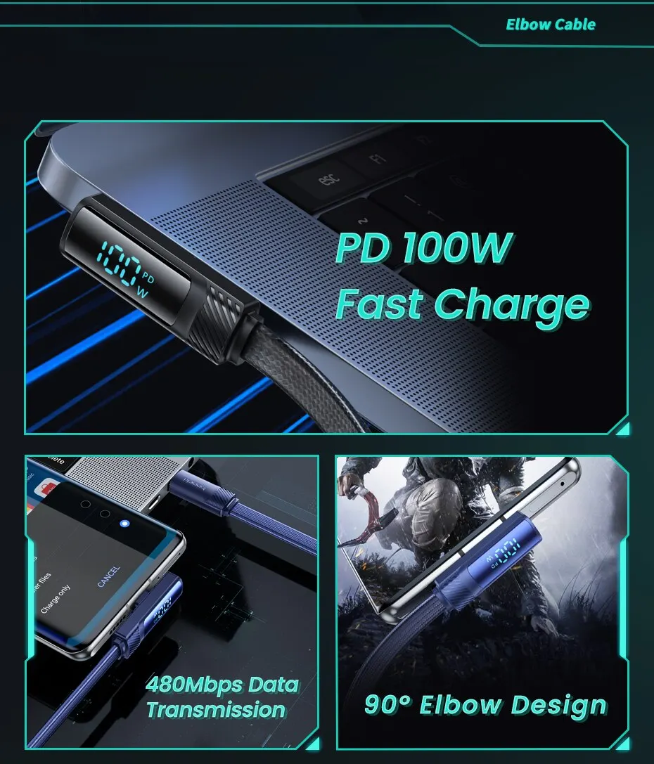 • Pantalla digital de ángulo de 90 grados:La pantalla digital de ángulo de 90 grados permite una fácil visualización del estado del cable, lo que lo hace conveniente de usar y garantiza que nunca pierda la pista de su progreso de carga.