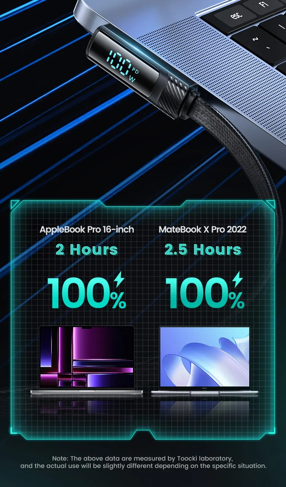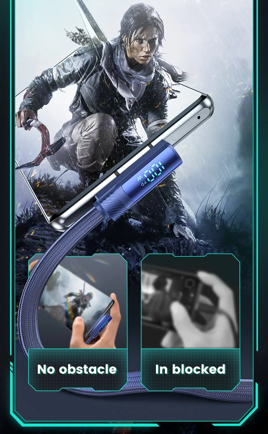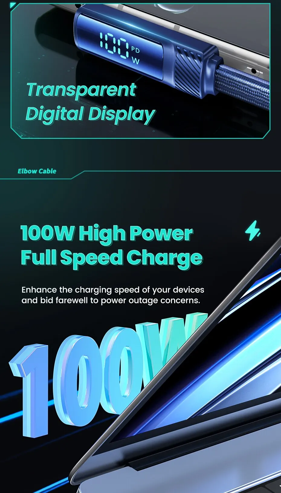 • Pantalla digital de ángulo de 90 grados:La pantalla digital de ángulo de 90 grados permite una fácil visualización del estado del cable, lo que lo hace conveniente de usar y garantiza que nunca pierda la pista de su progreso de carga.