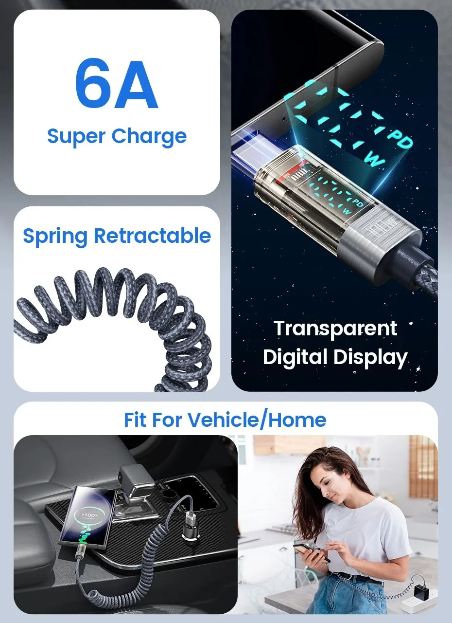 • Pantalla 66W:Cargue su dispositivo rápidamente con una corriente máxima de 6A y un conector Tipo-C.
