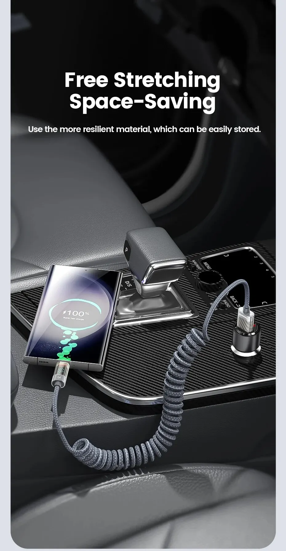 [Diseño de primavera]Super elasticidad estirada libremente hasta 1,8 m que es para la carga de emergencia de la fila trasera.