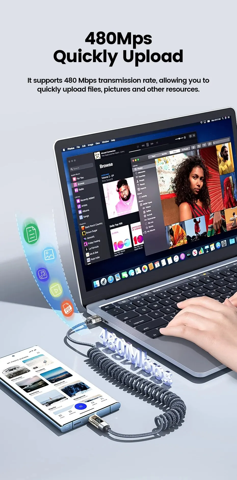 Función: Carga rápida + transmisión USB2.0