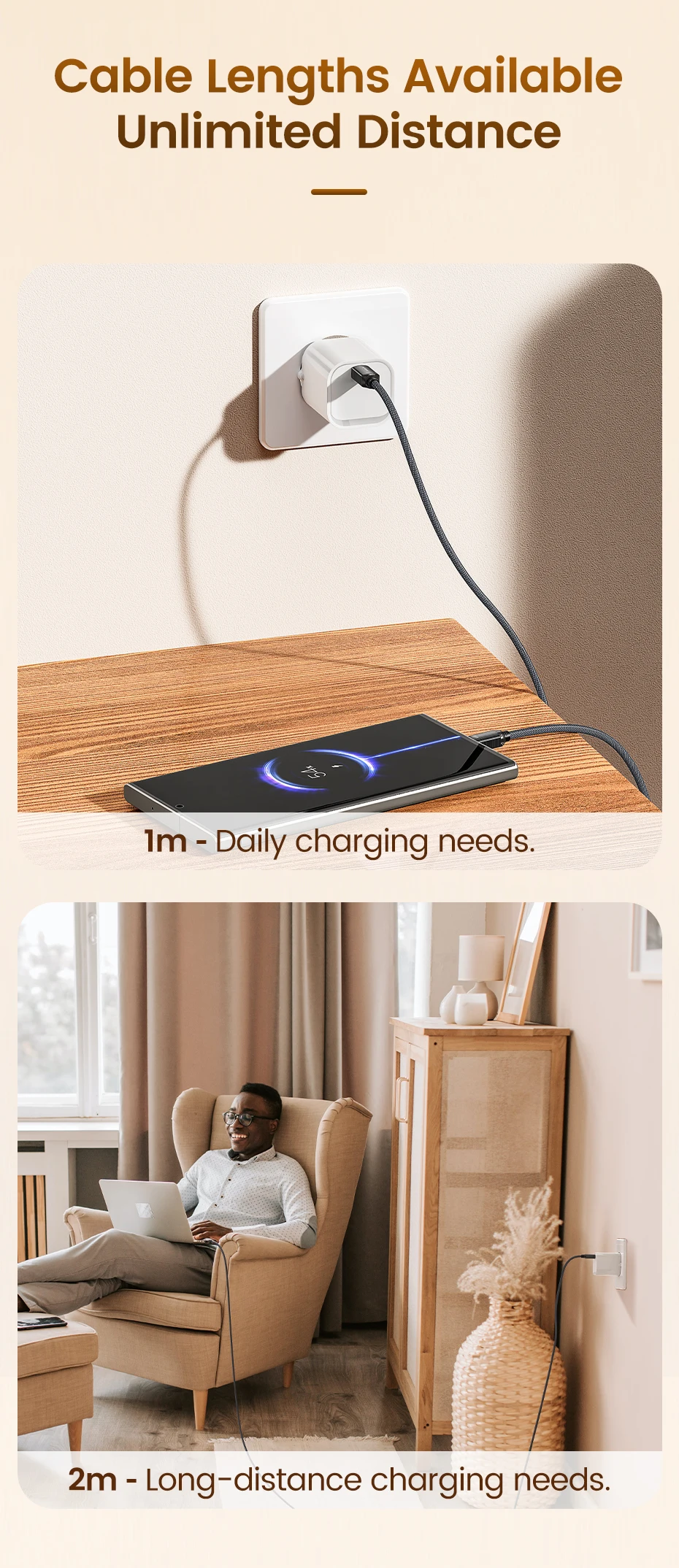 • Conector tipo C: conecte sus dispositivos sin problemas con el conector tipo C en ambos extremos.