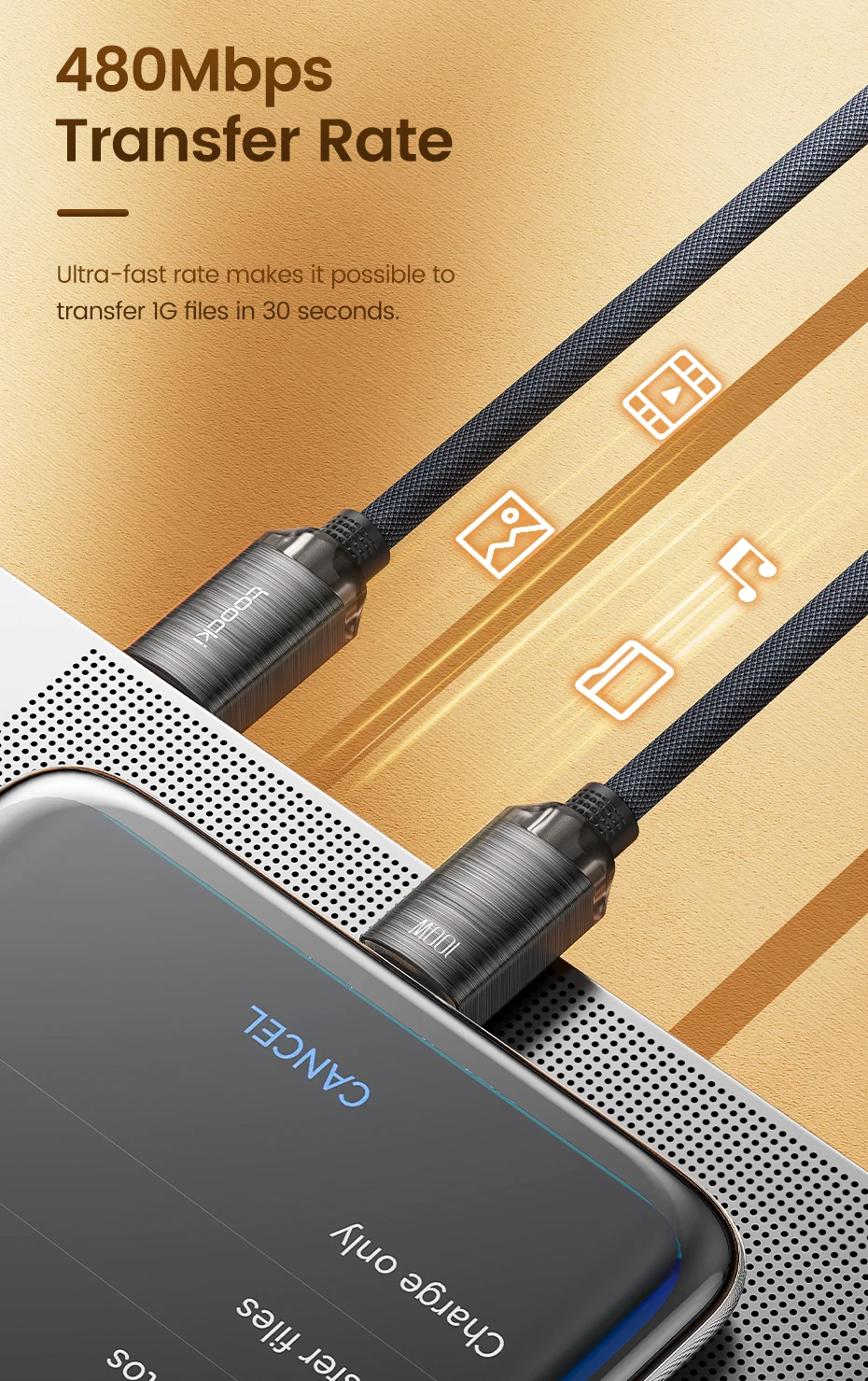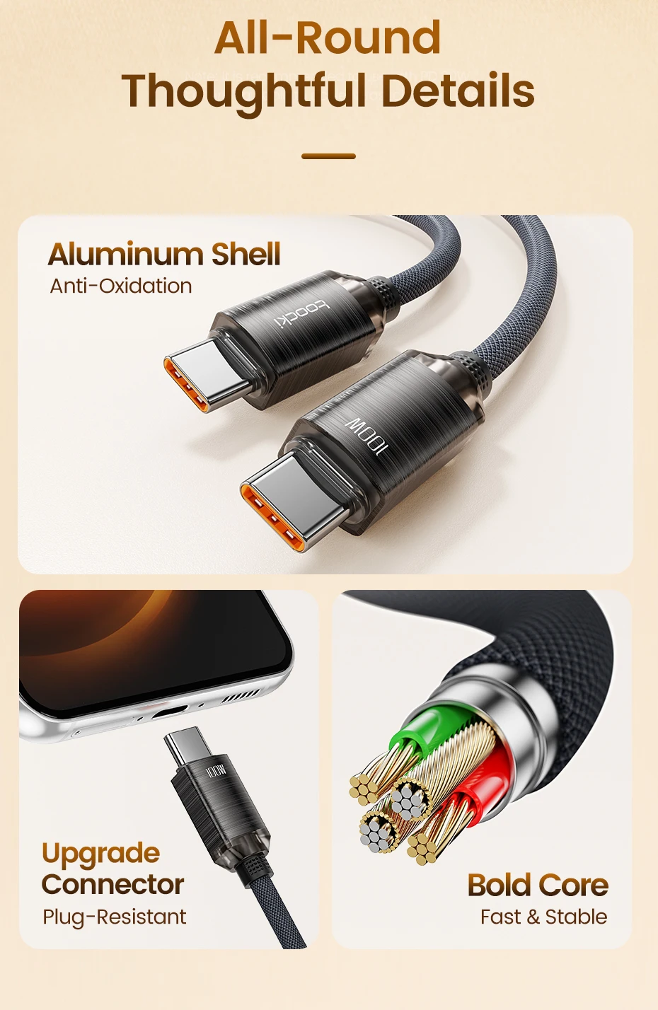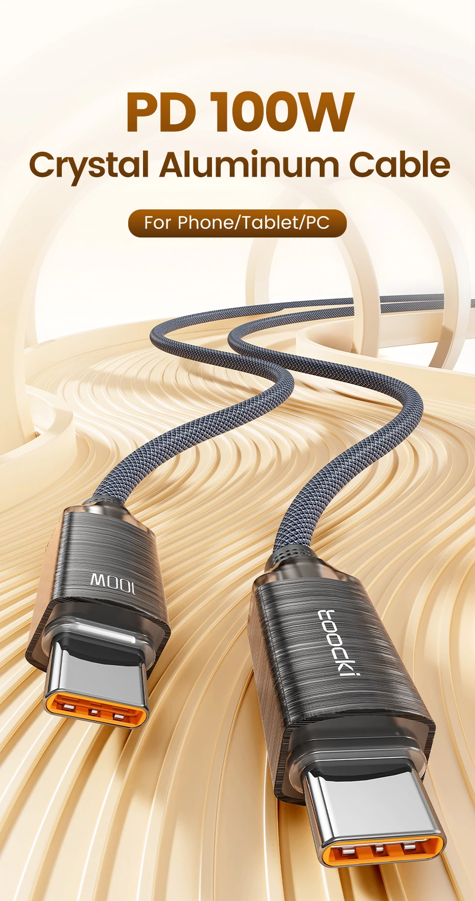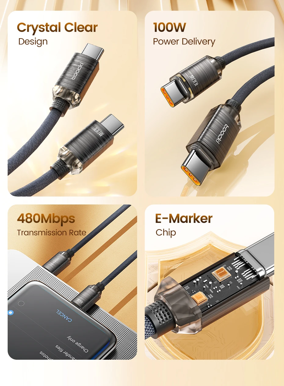 • Carga rápida de 100W :El cable Toocki USB Type C a Type C ofrece una carga rápida de 100W, permitiendo recargar tus dispositivos en un tiempo récord.