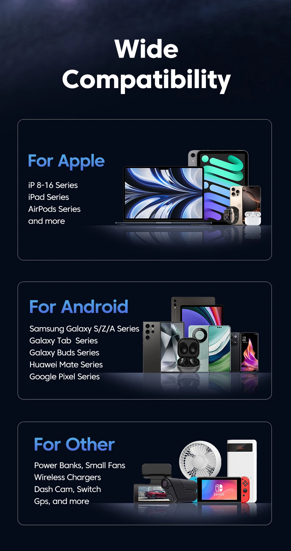 Compatible con protocolos como PD 3.0, QC 4+, PPS, AFC, SCP, FCP: