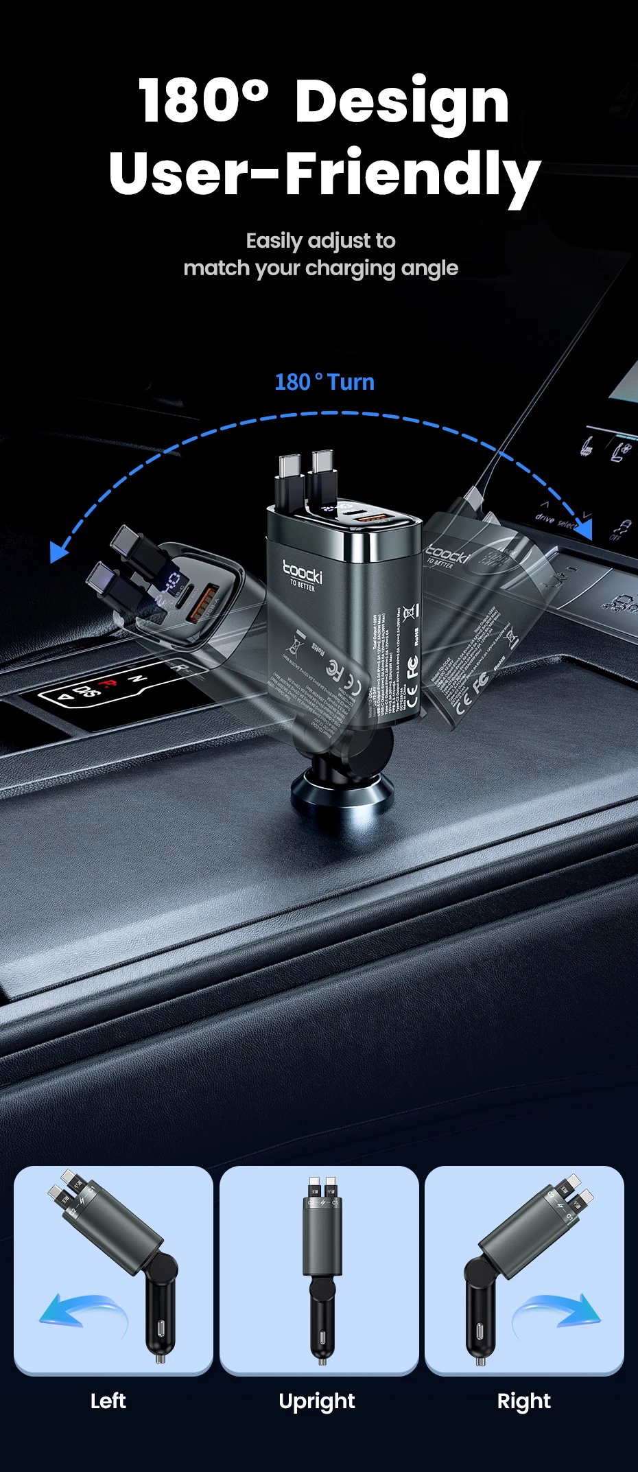 Nombre del producto: Cargador de coche con cable retráctil doble