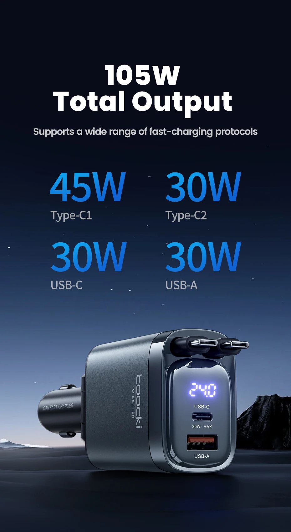 Tipo C1+Tipo C2+USB-A: 45W+30W+30W