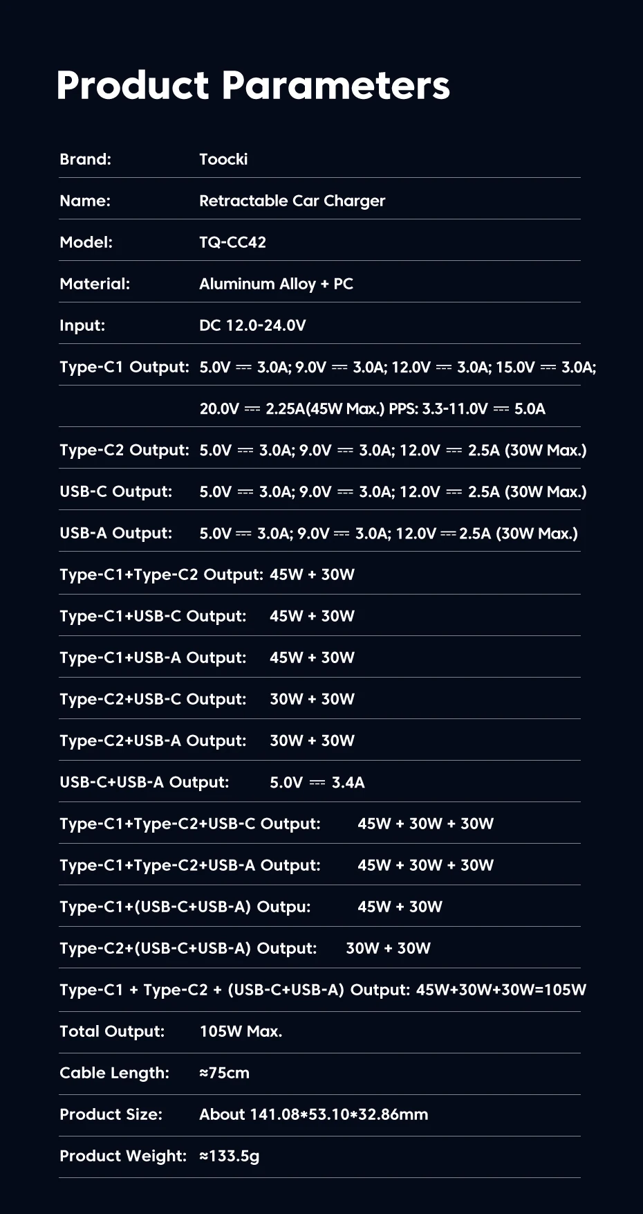 Tipo-C1+(USB-C+USB-A): 45W+30W