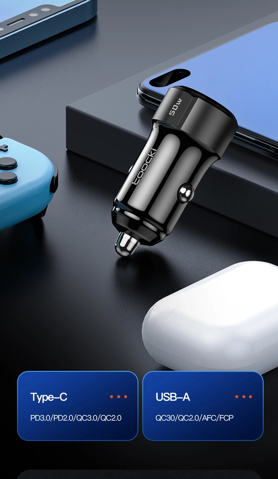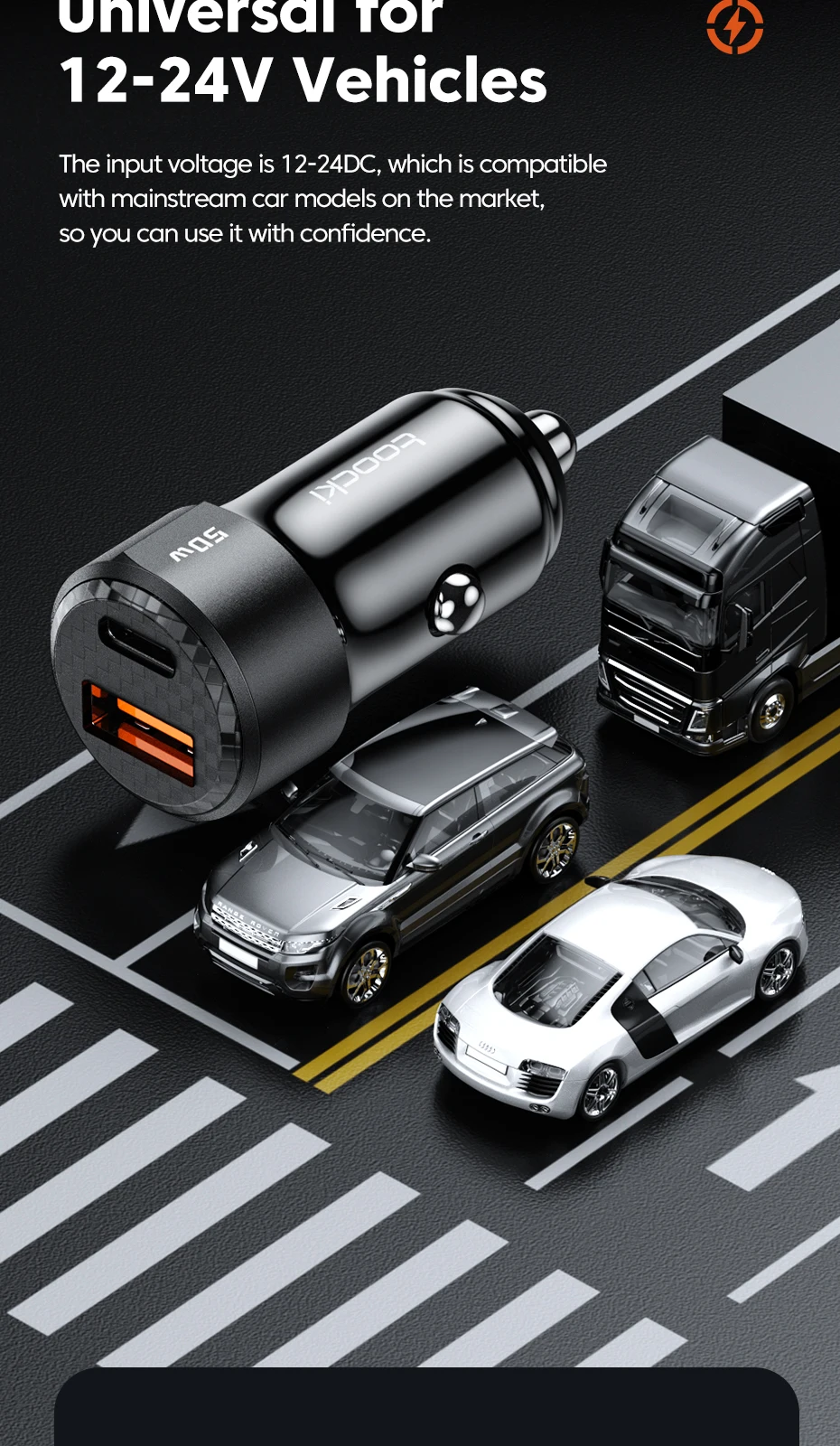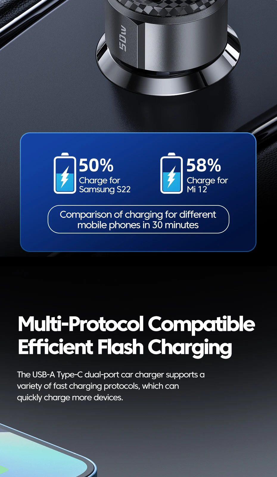 Nombre: Cargador de coche de doble puerto de 50W