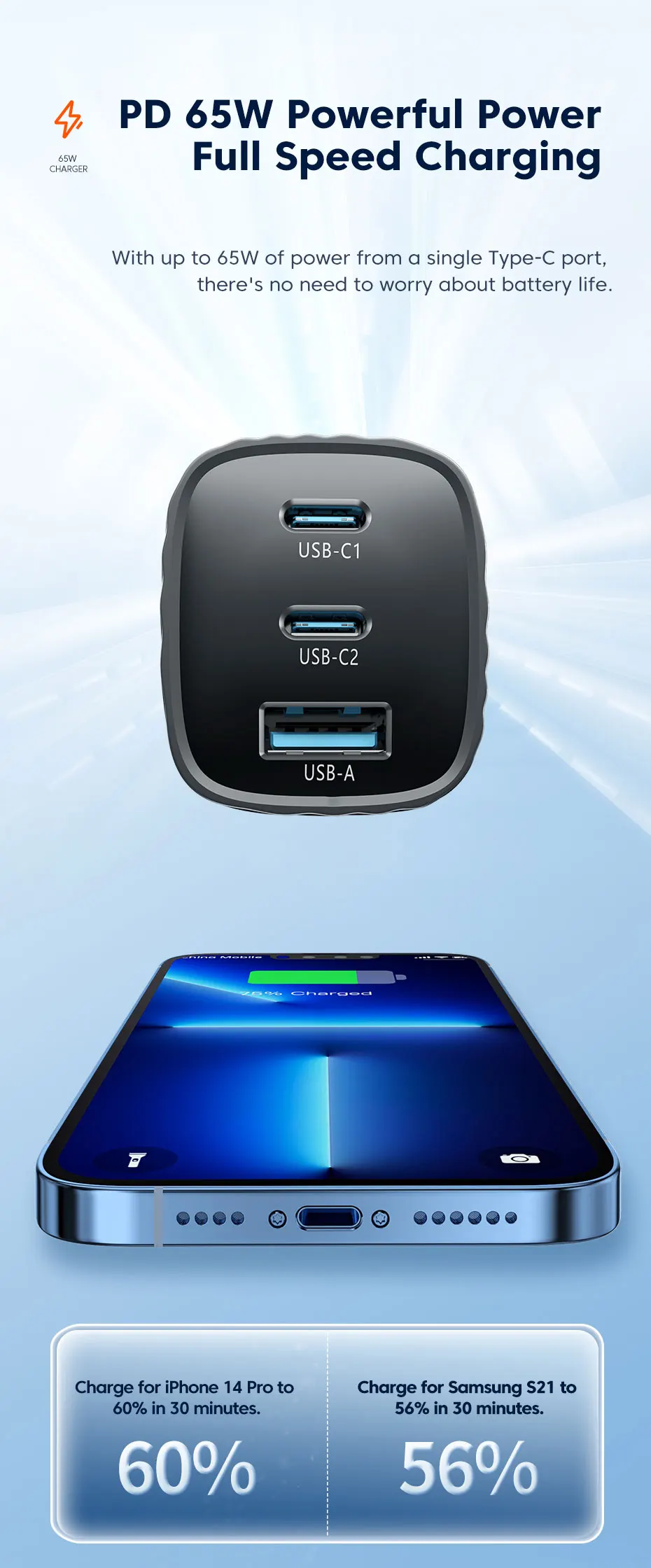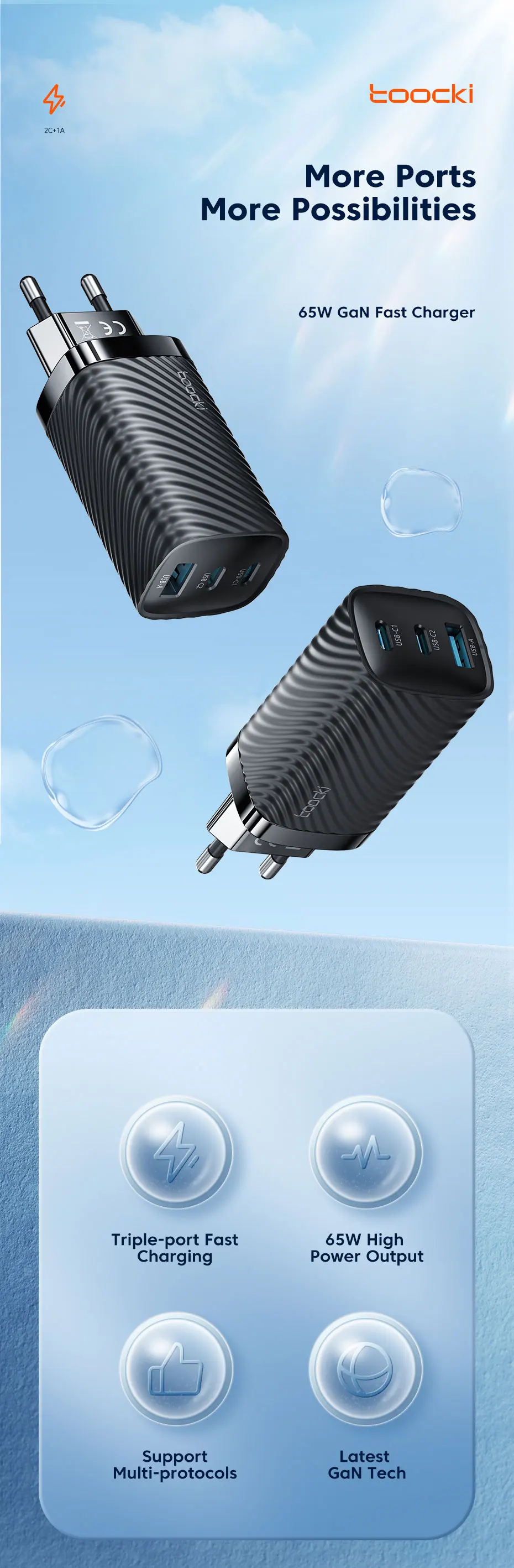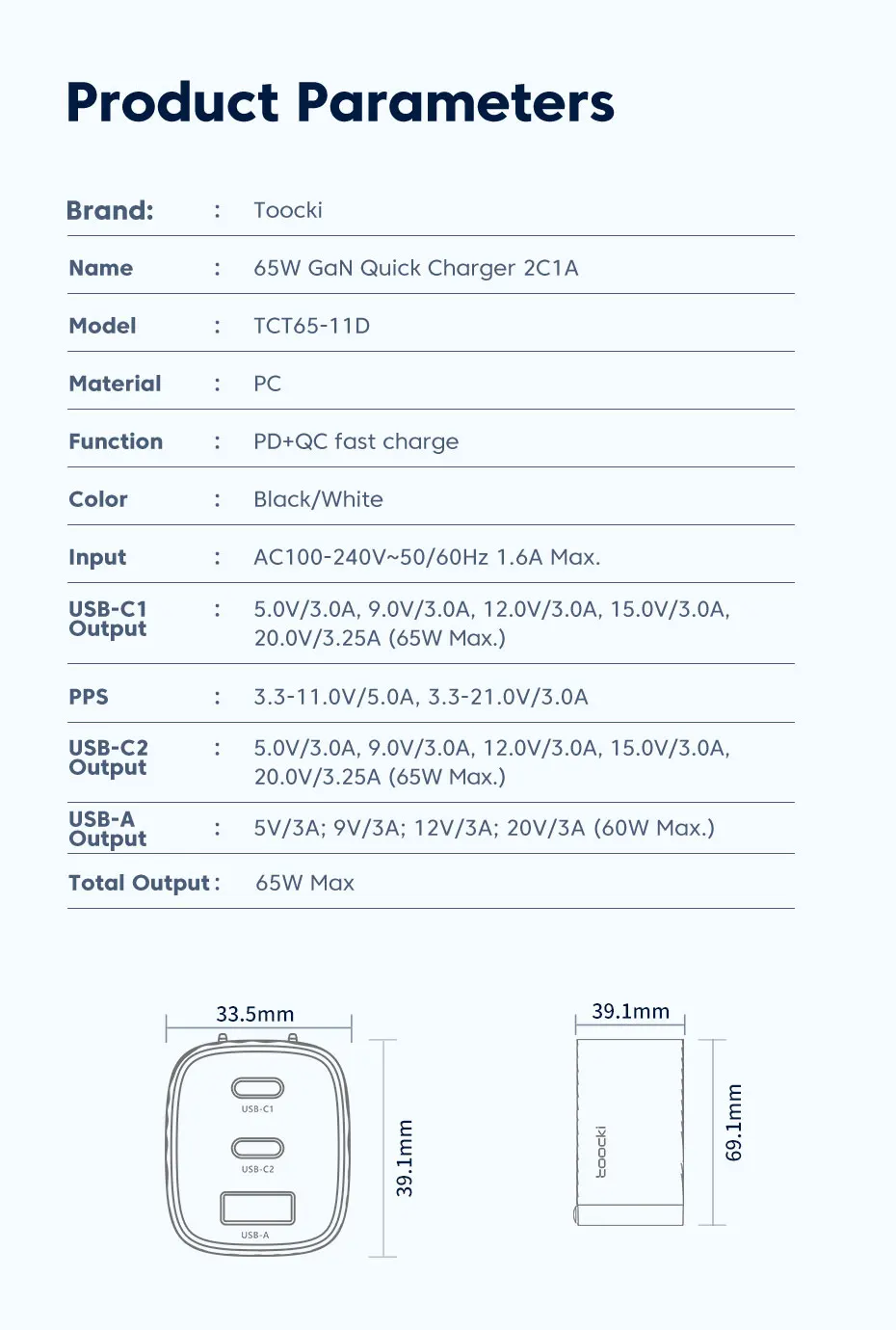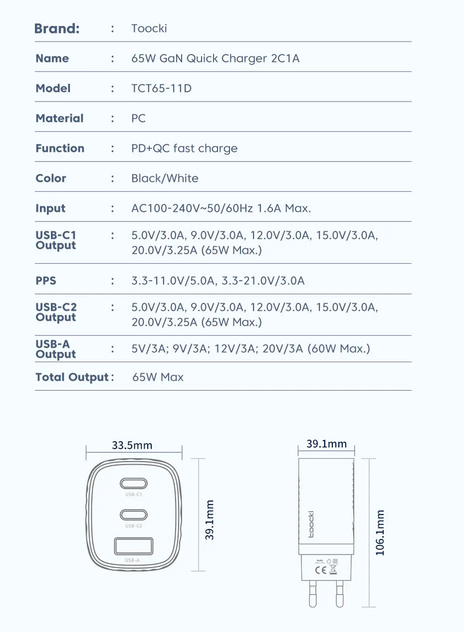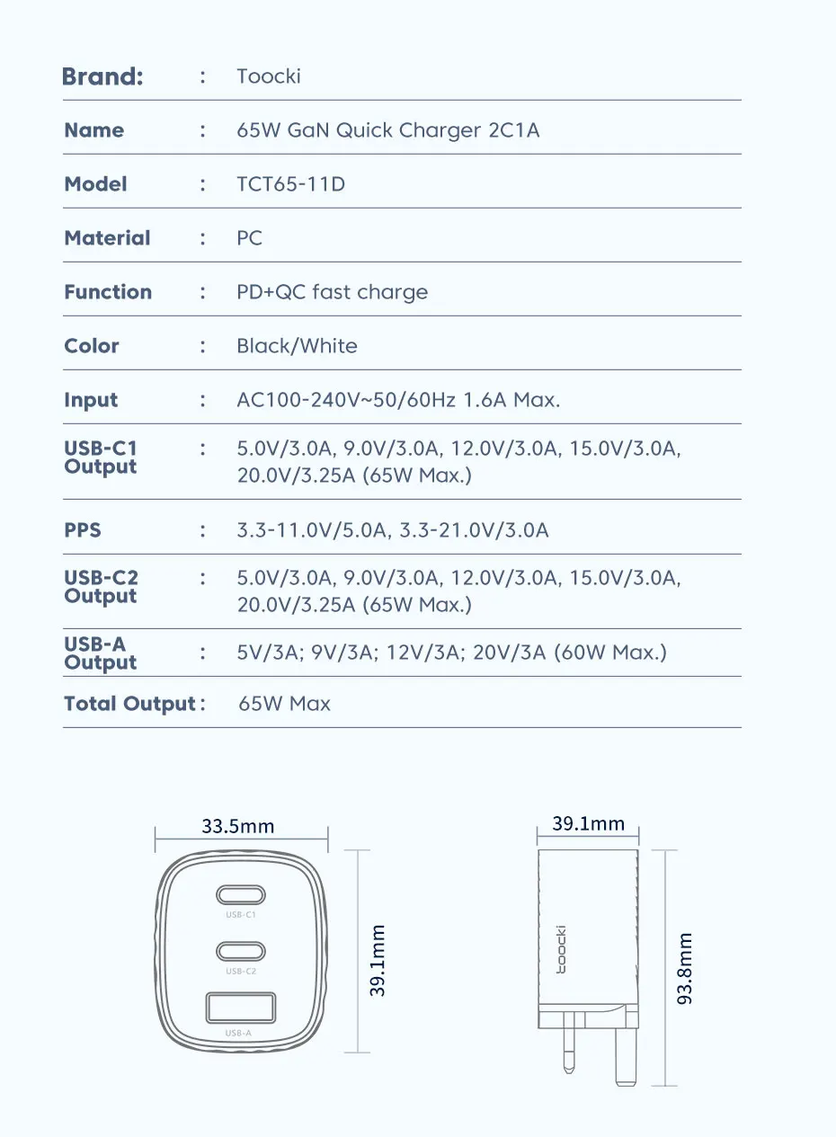 Nombre: 65W GaN cargador rápido 2C1A