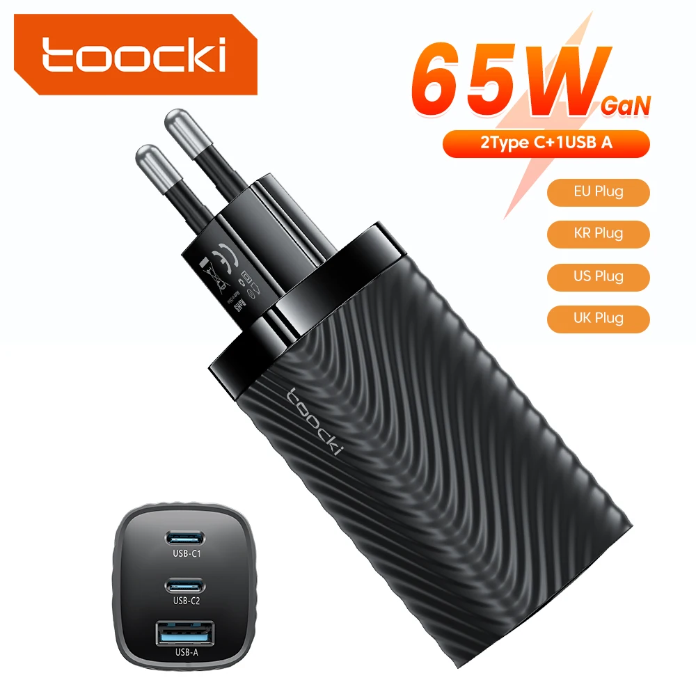 Comprar Toocki-cargador GaN de 65W tipo C, dispositivo de carga rápida 4,0 PD para iPhone 14, Macbook, Xiaomi, Samsung S23, Ultra USB