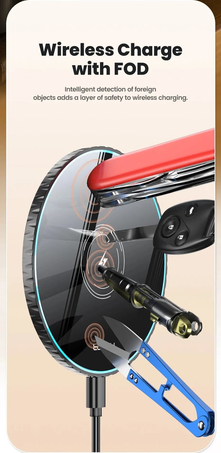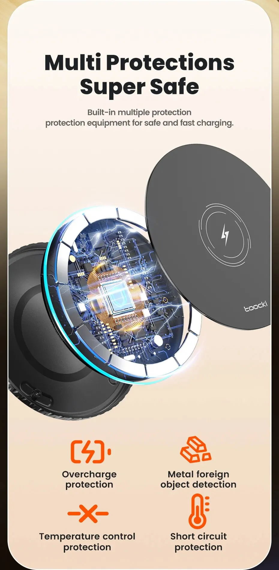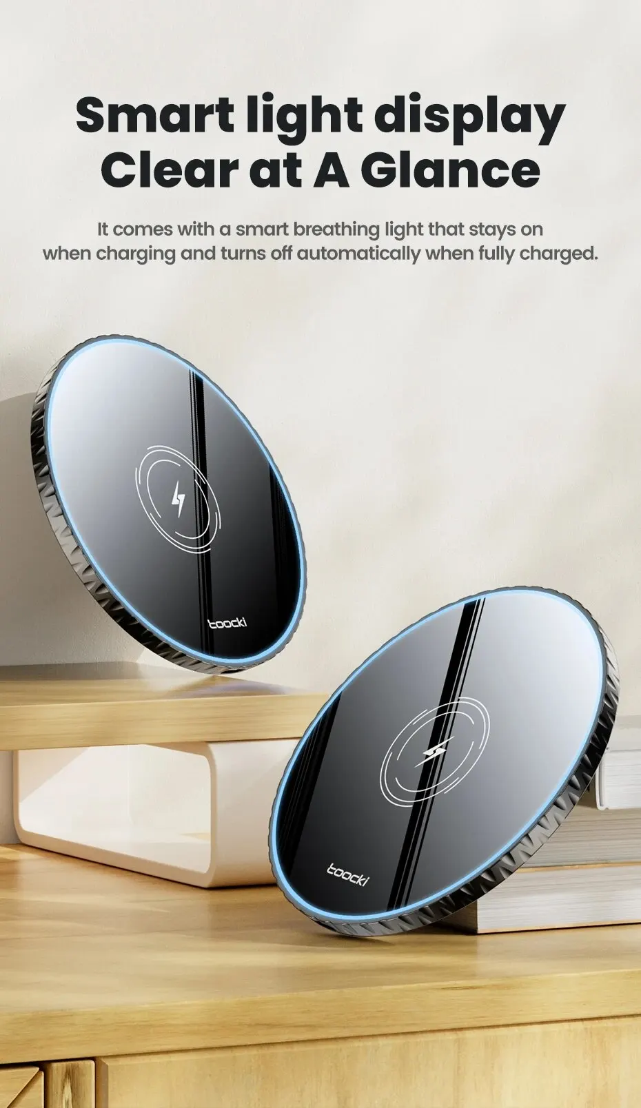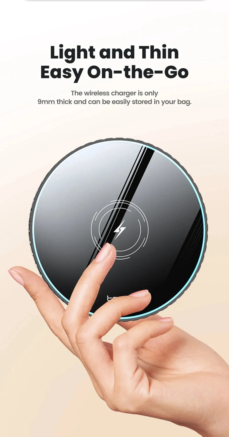 Teléfono Xiaomi 15t pro Pedí 3 cargadores inalámbricos. Aproximadamente los mismos resultados 1.75 amperios 7 vatios - en un caso. 1.95 amperios 7.4 vatios - sin carcasa. El artículo se ve bien, los materiales son agradables, pero la parte superior es brillante y se ensucia fácilmente.