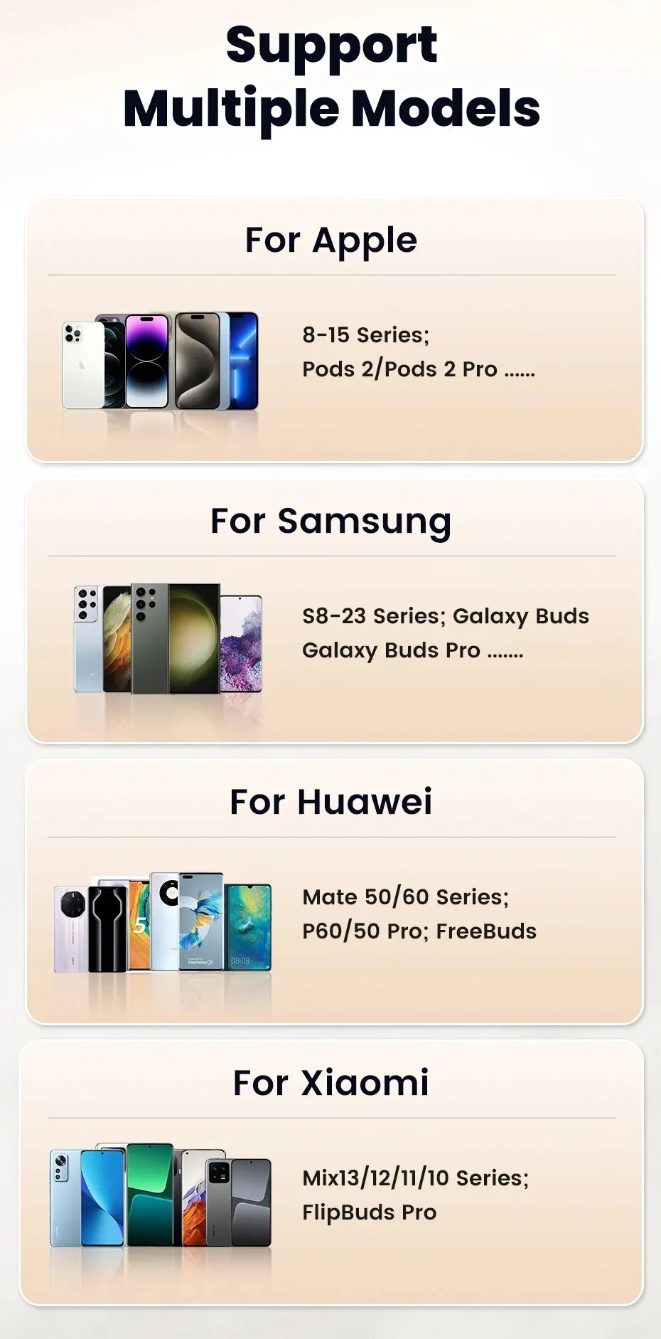 El embalaje es bueno. Entrega rápida. El producto no es muy adecuado para la serie iPhone Pro; el bloque de la cámara interfiere con la configuración de carga. Cargan muy lentamente (probado con diferentes adaptadores).