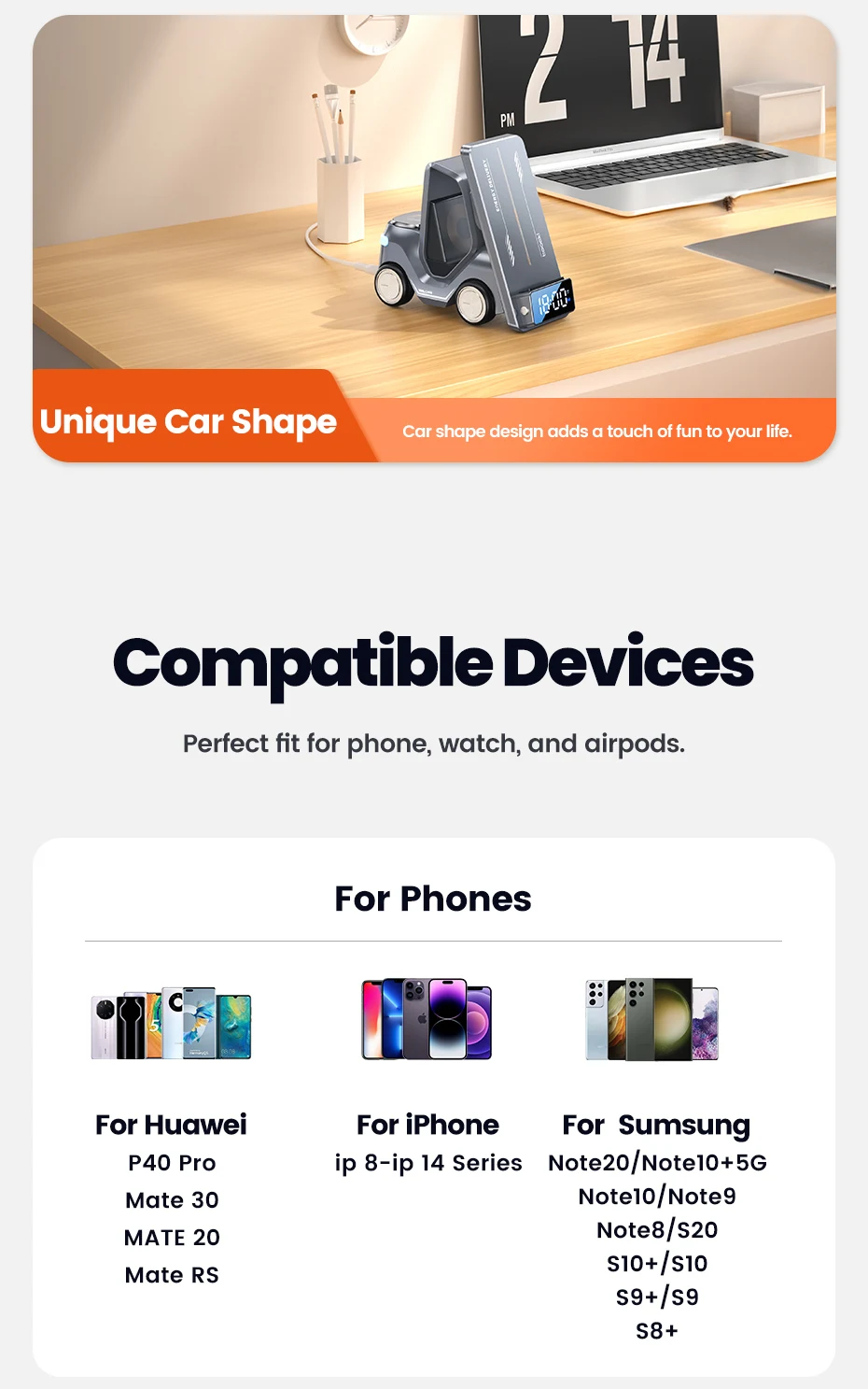 2. Admite la carga simultánea de teléfono móvil/auriculares/reloj, Diga adiós a la esclavitud por cable.