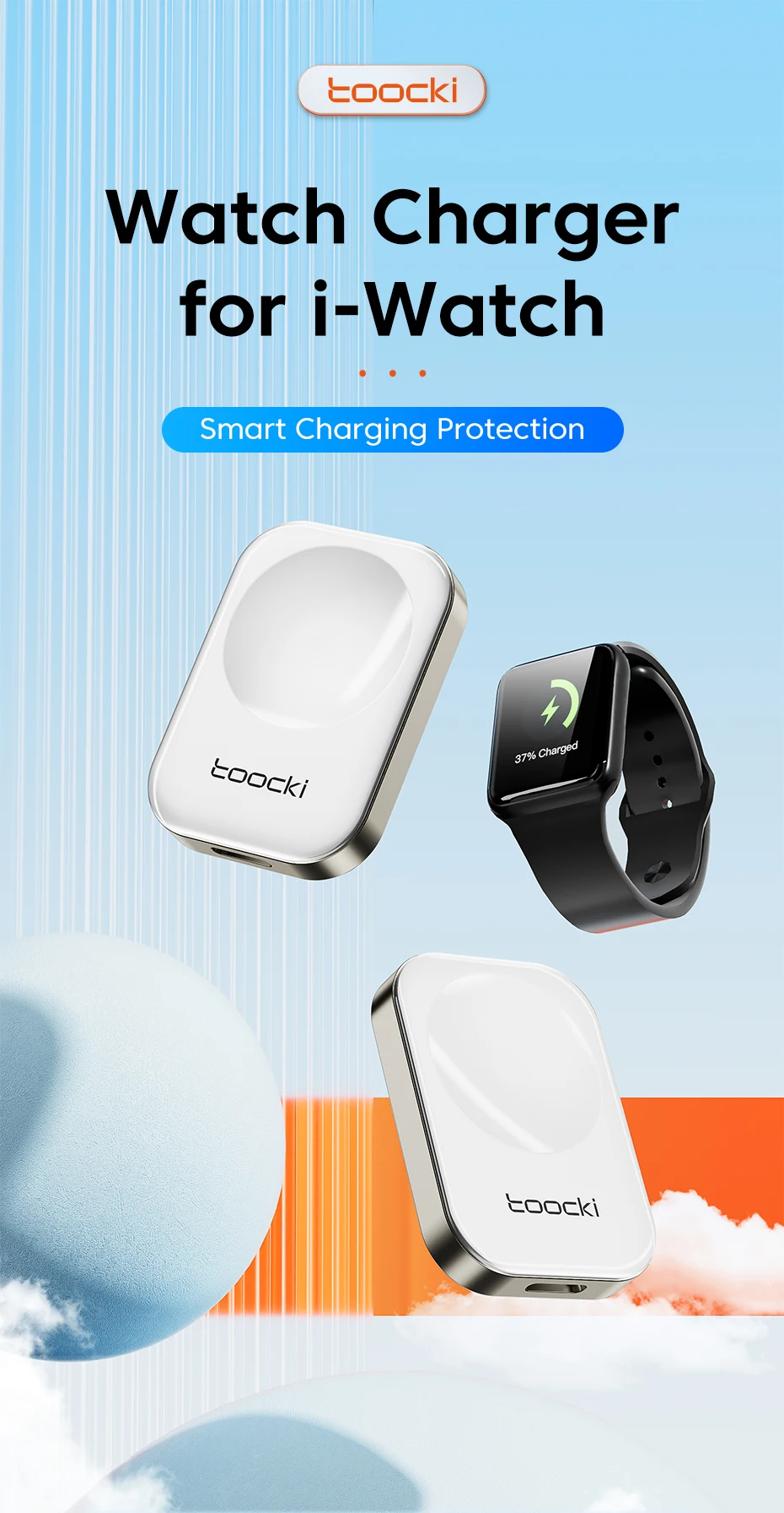Comprar Toocki-cargador inalámbrico portátil para Apple Watch 7 SE 6 5 4 Lightning, estación de carga USB para iWatch Series 7 SE 6 5 4