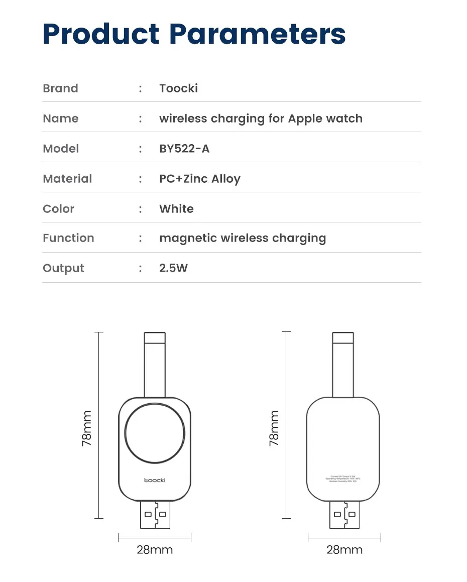 Comprar Toocki-cargador inalámbrico portátil para Apple Watch 7 SE, estación de carga magnética USB para IWatch Series 7 SE 6 5 4