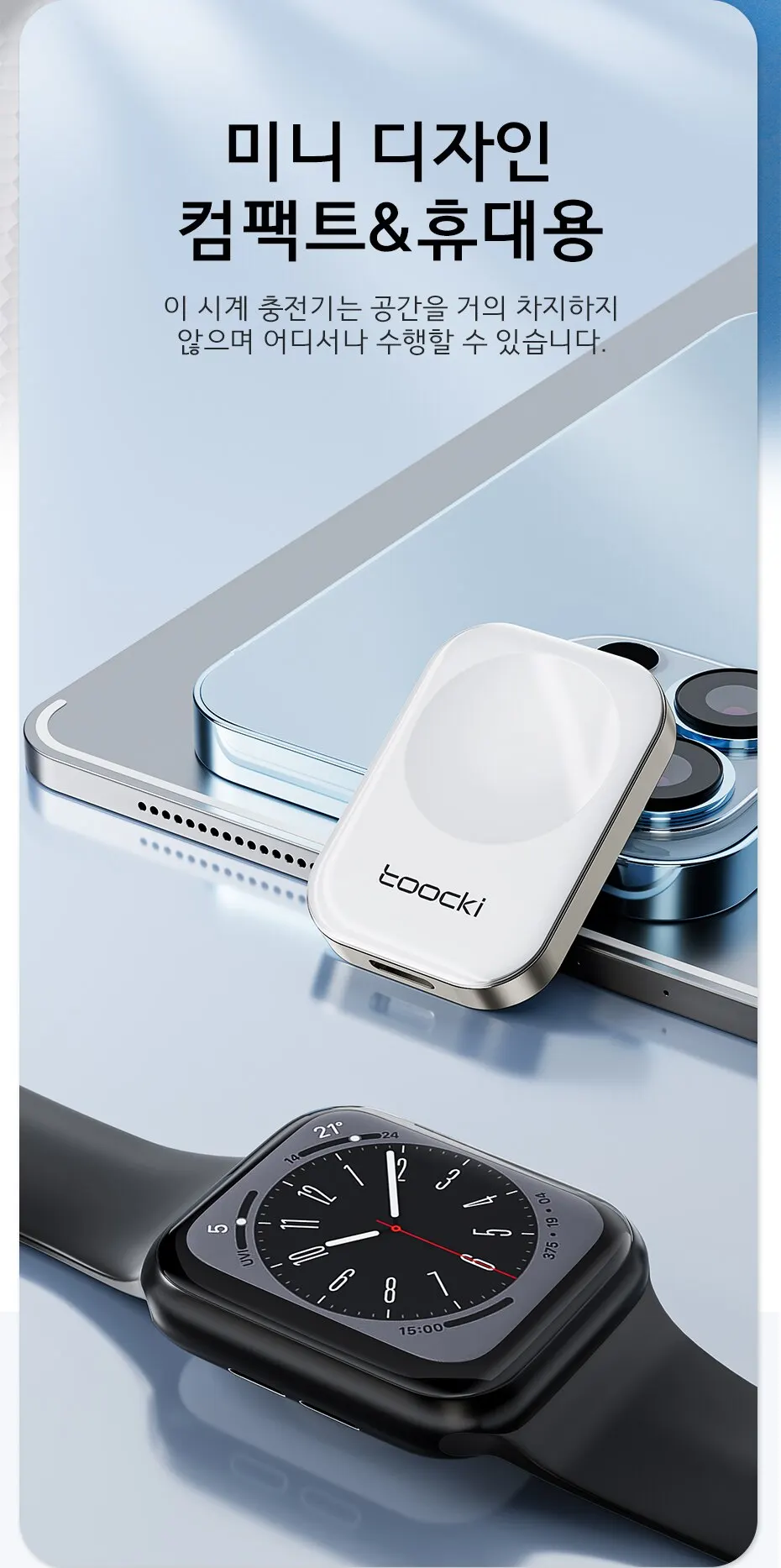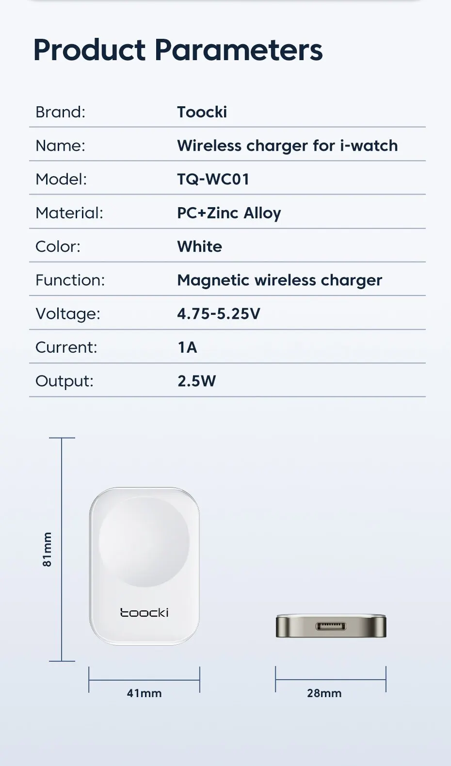 • Cargadores inalámbricos magnéticos:El cargador inalámbrico portátil Toocki presenta un diseño magnético que garantiza que su Apple Watch se mantenga seguro en su lugar mientras se carga.