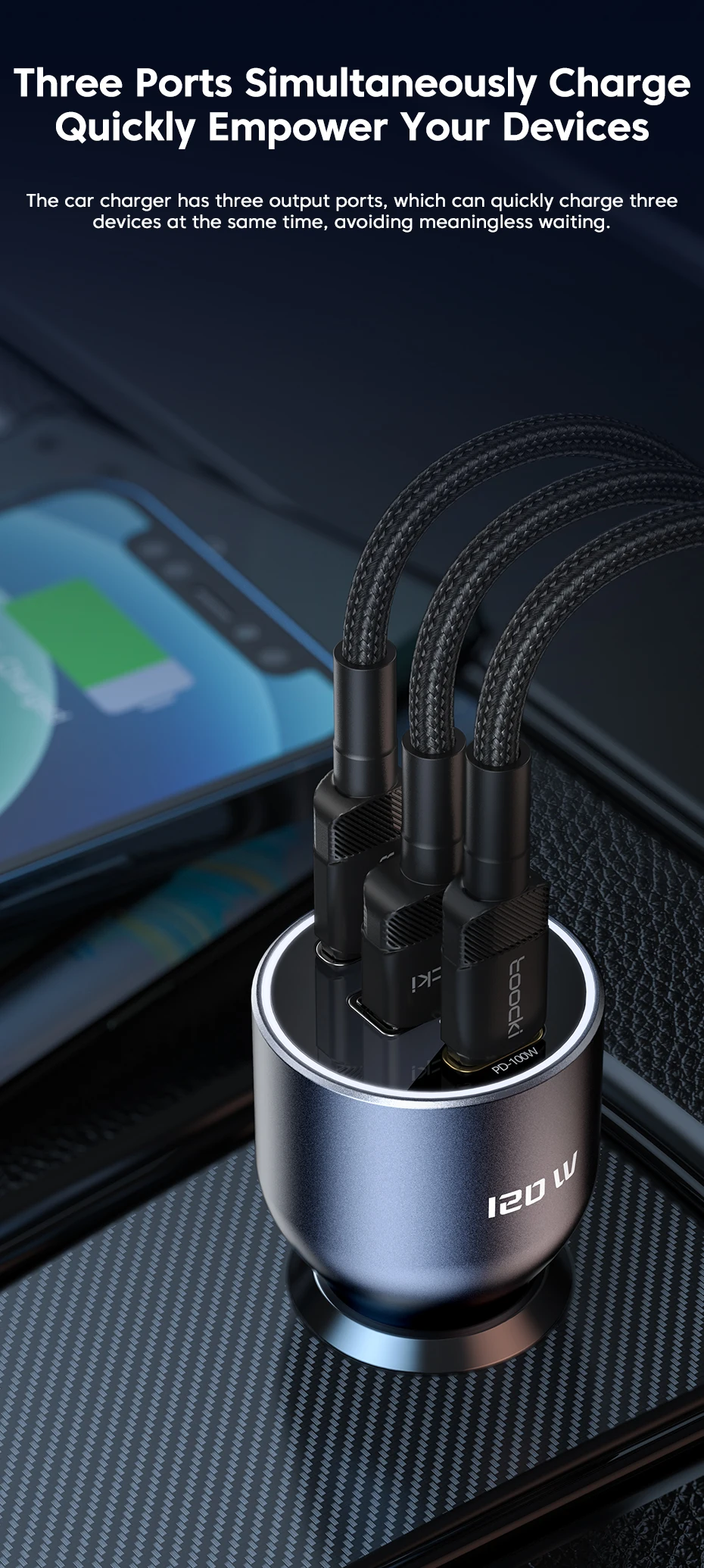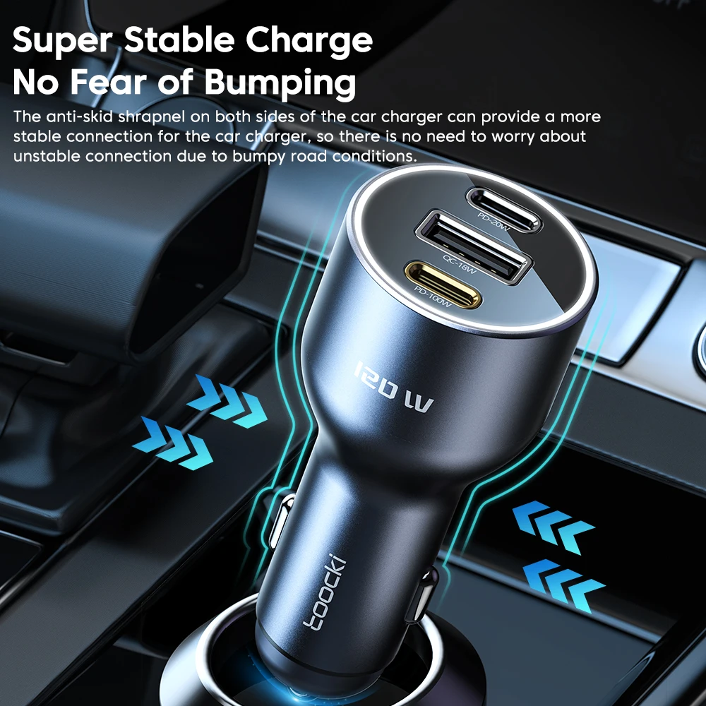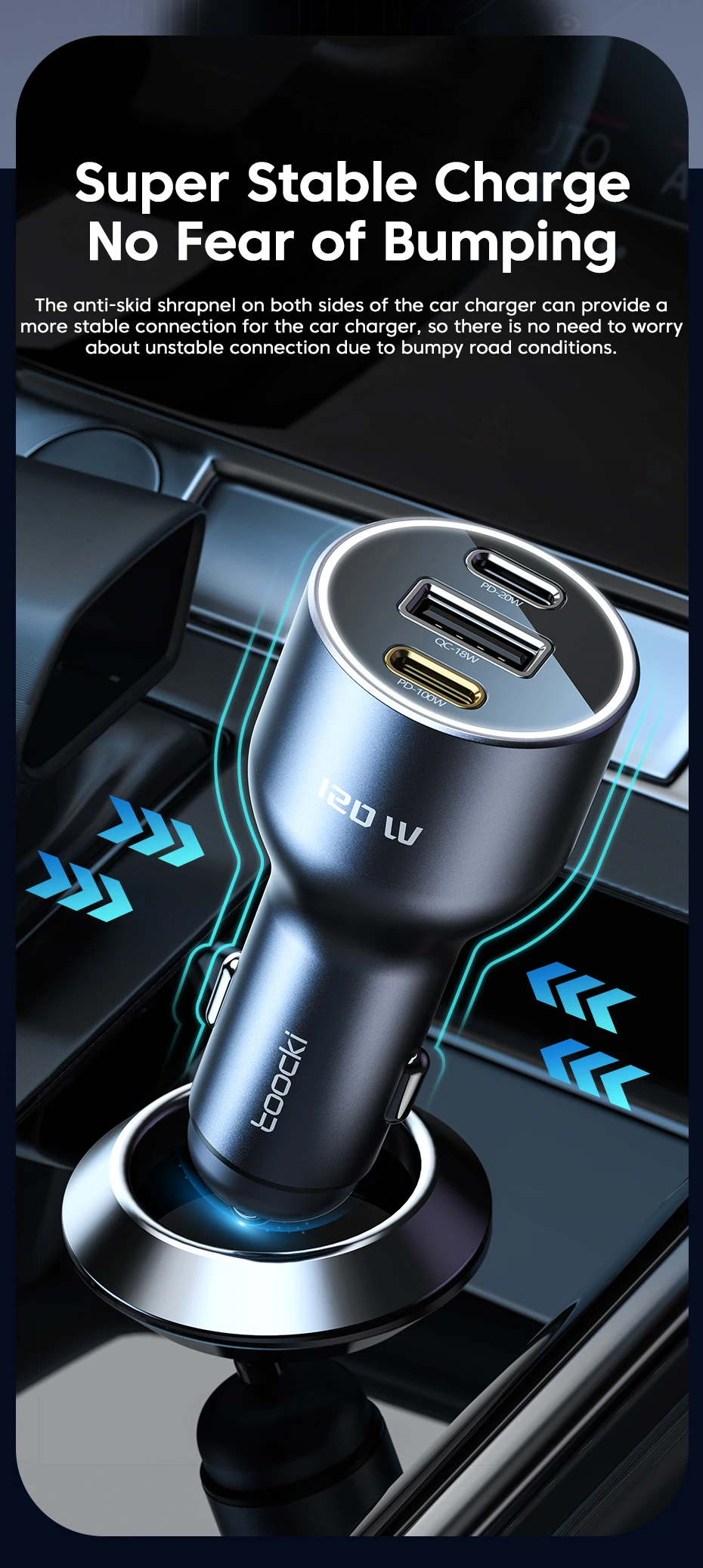 Comprar Toocki-cargador de teléfono para coche, dispositivo de carga rápida de 120W, USB tipo C, Q4.0, PD3.0, para iPhone 14, 13, 12, Samsung, Xiaomi, Macbook y portátil