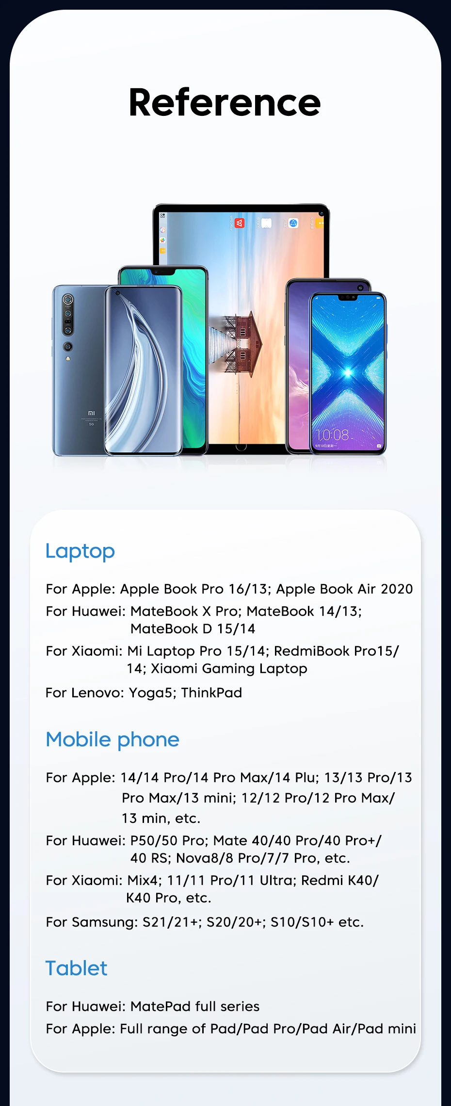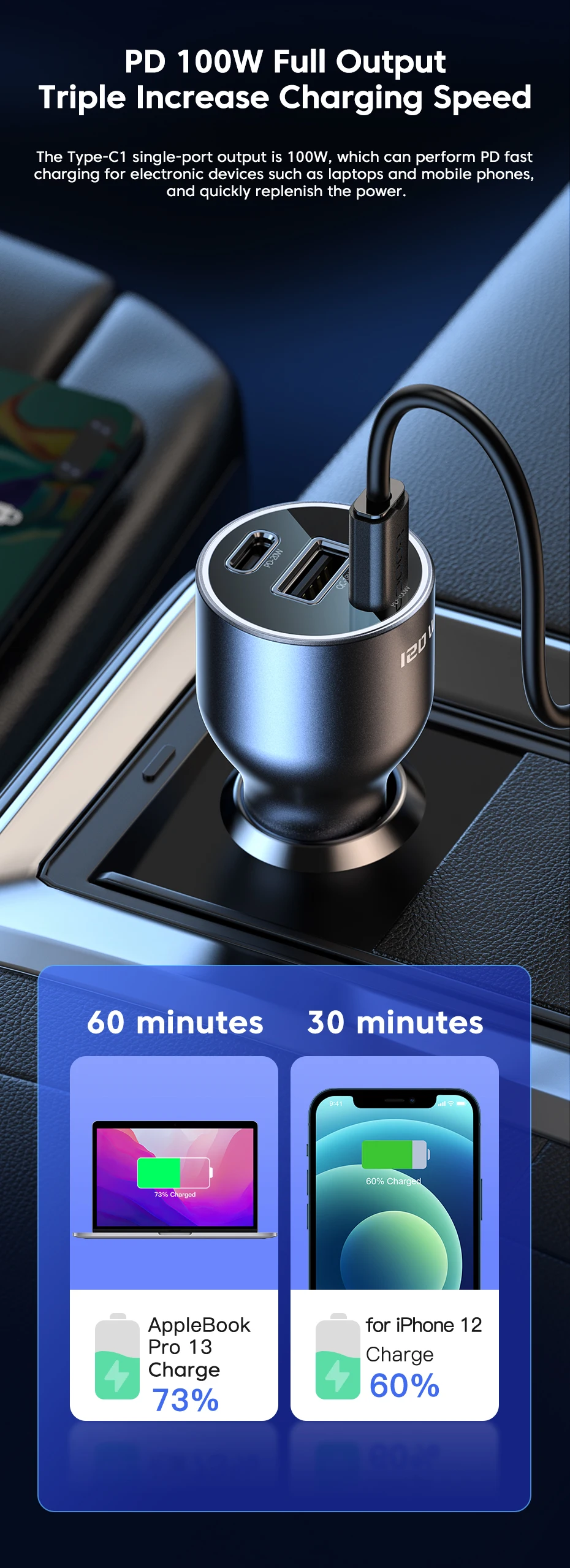 Type-C1 Output:5V/3A;9V/3A;12V/5A;15V/5A;20V/5A(100W Max)