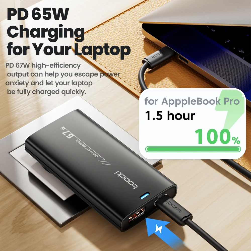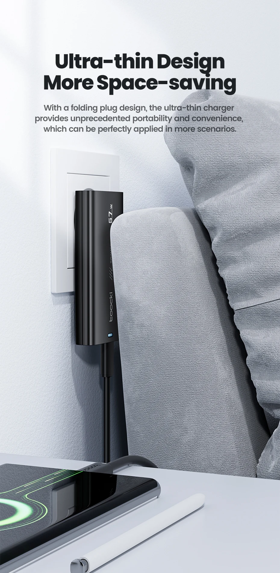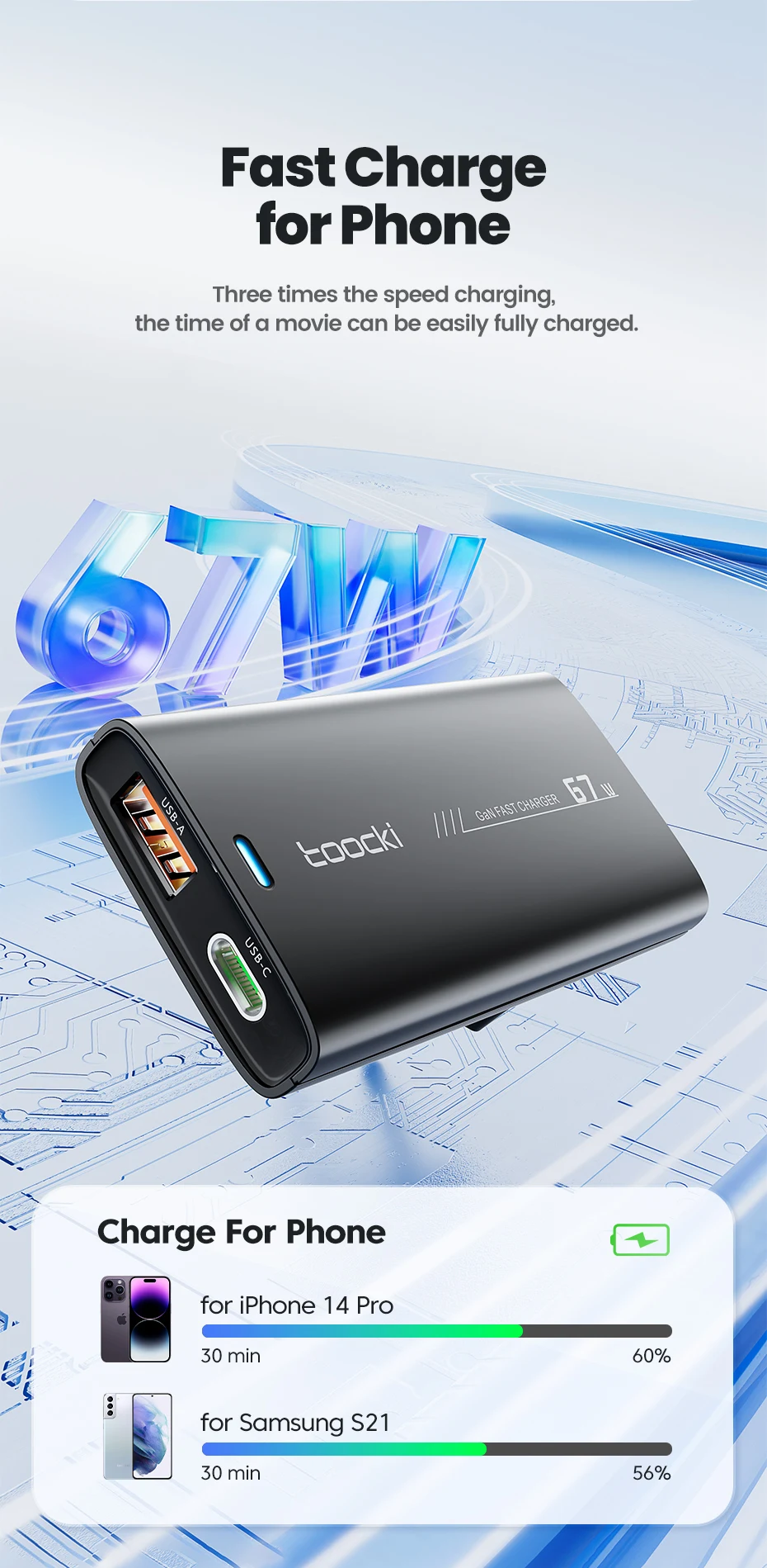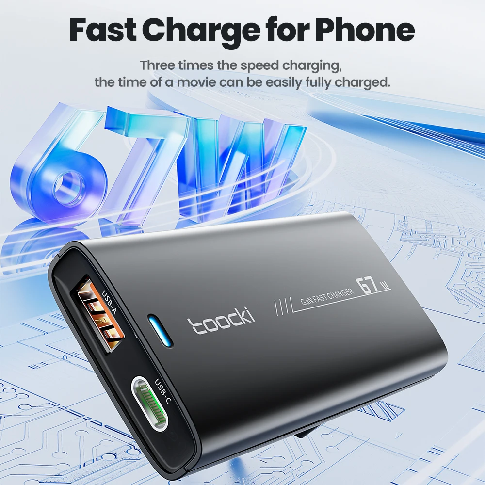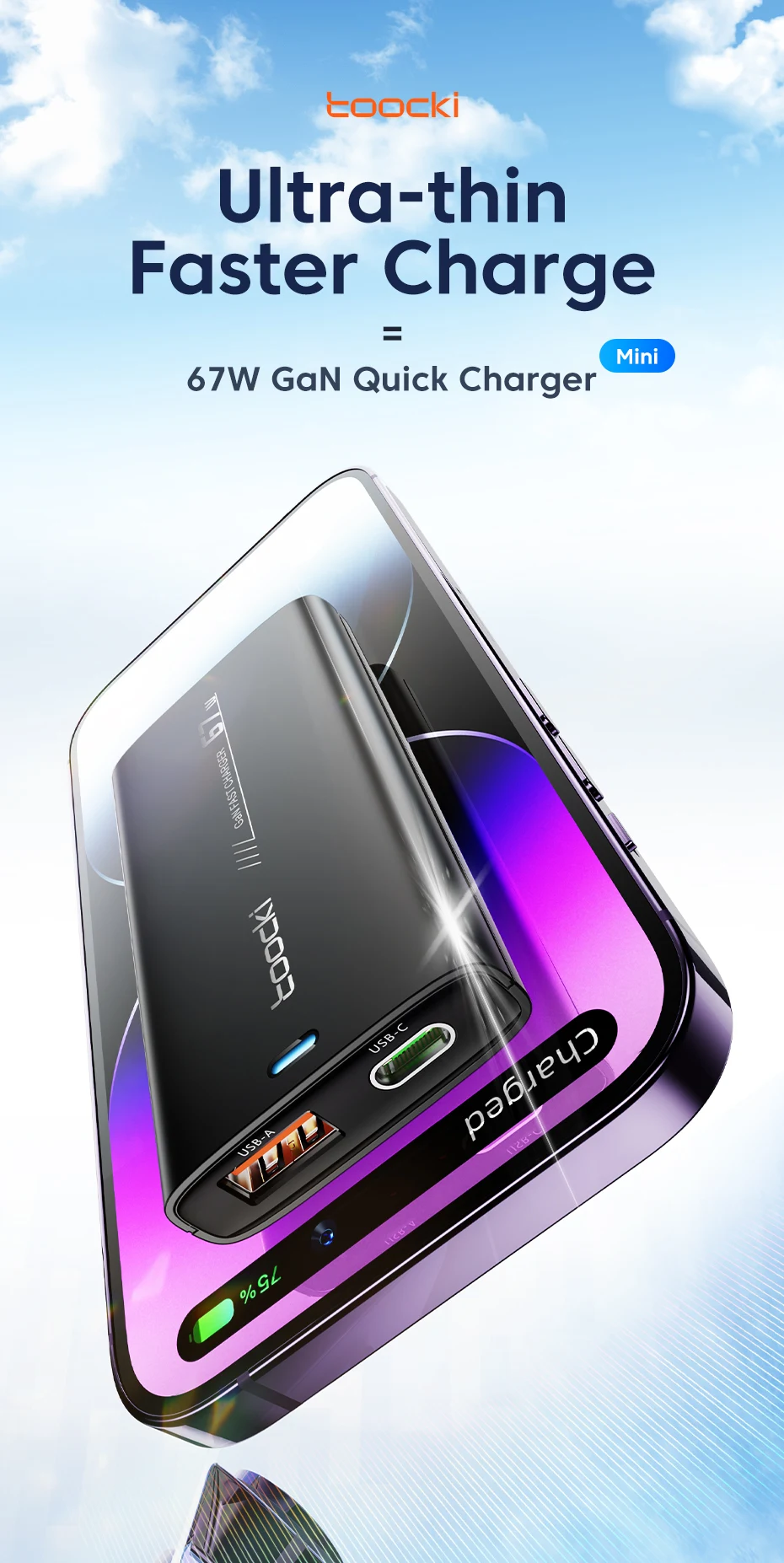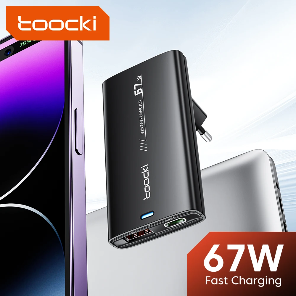 Comprar Toocki-cargador de teléfono GaN Mini QC4.0 PD3.0, carga rápida USB C para Macbook, iPhone 14, 13 pro Max, Samsung, Xiaomi, 67W