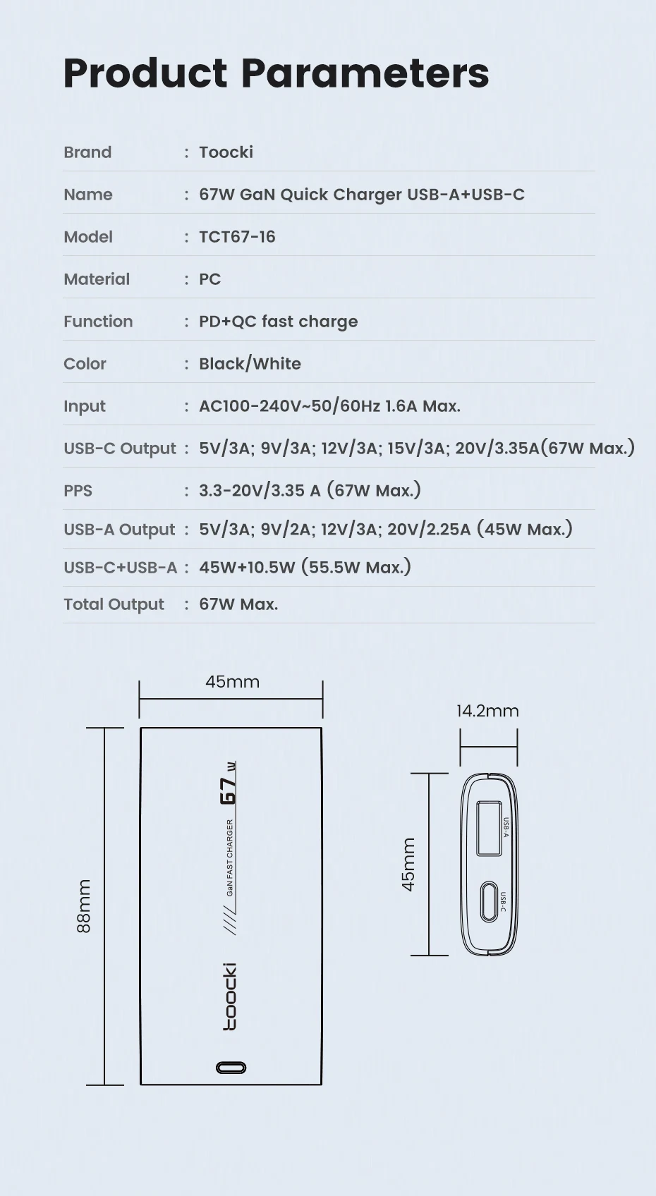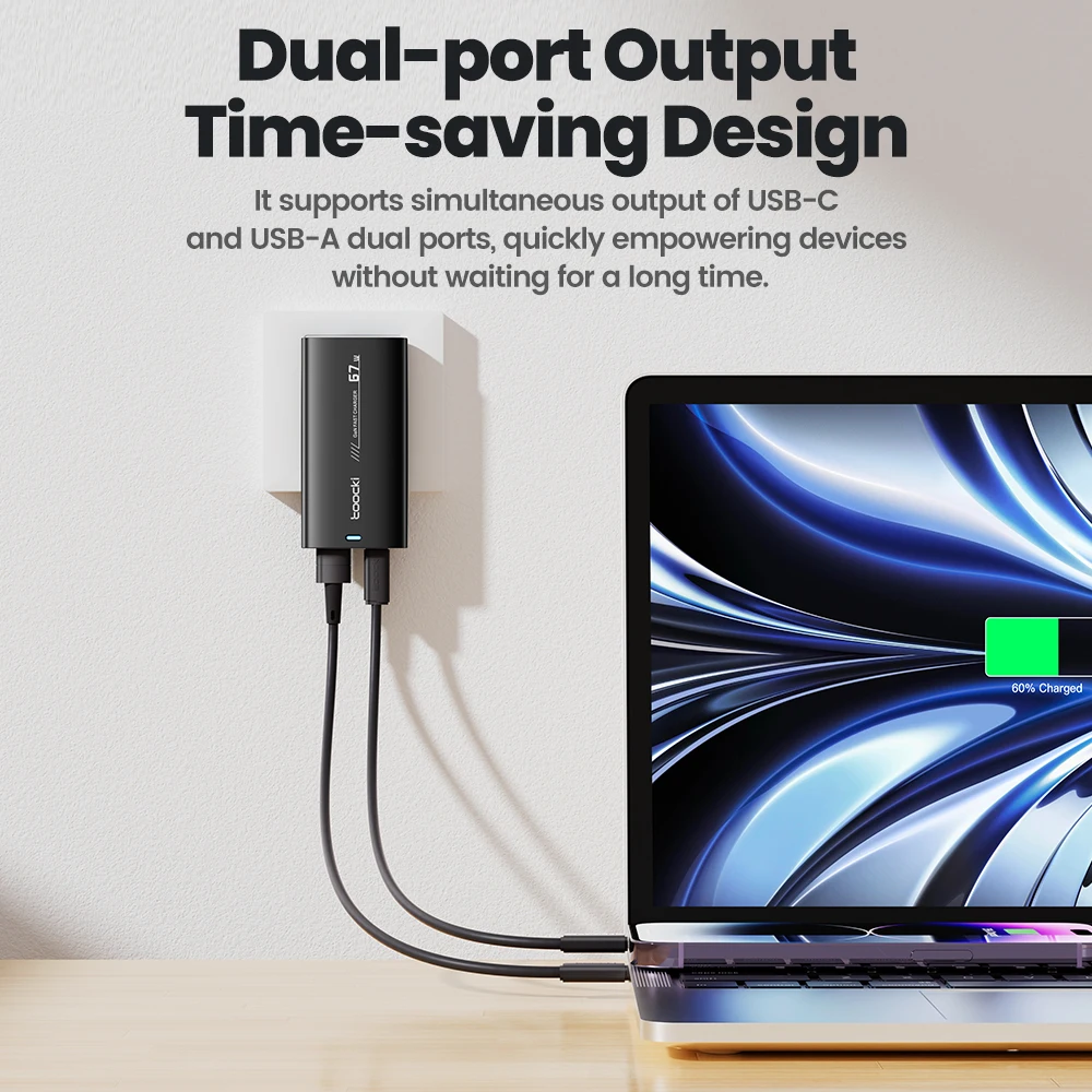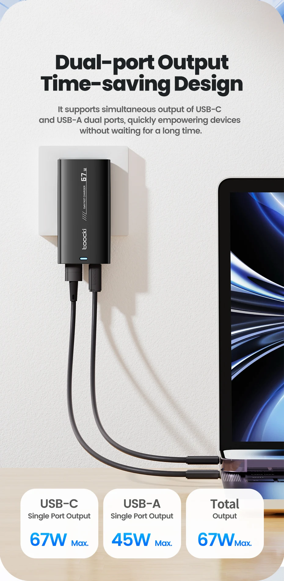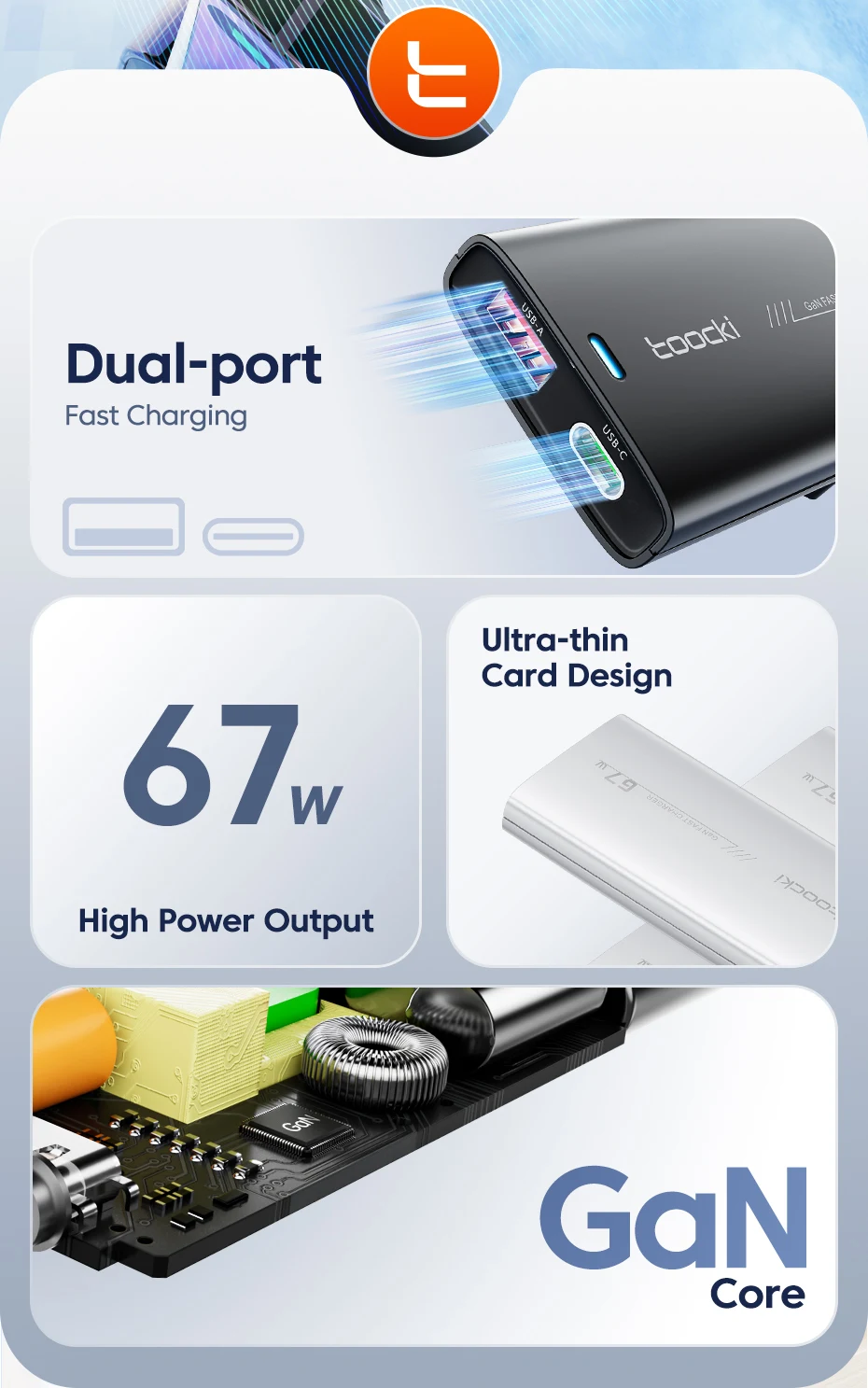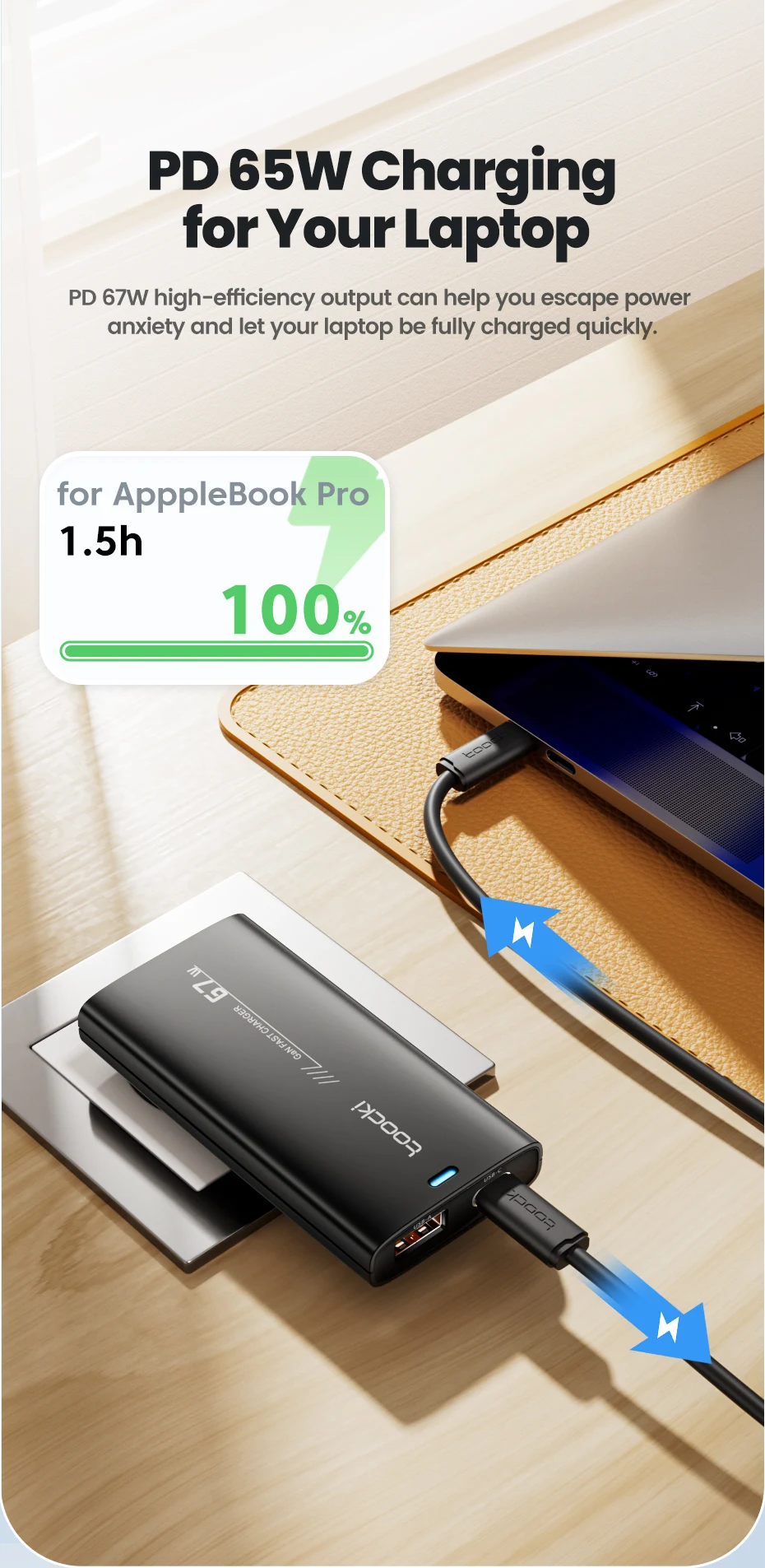 Comprar Toocki-cargador de teléfono GaN Mini QC4.0 PD3.0, carga rápida USB C para Macbook, iPhone 14, 13 pro Max, Samsung, Xiaomi, 67W