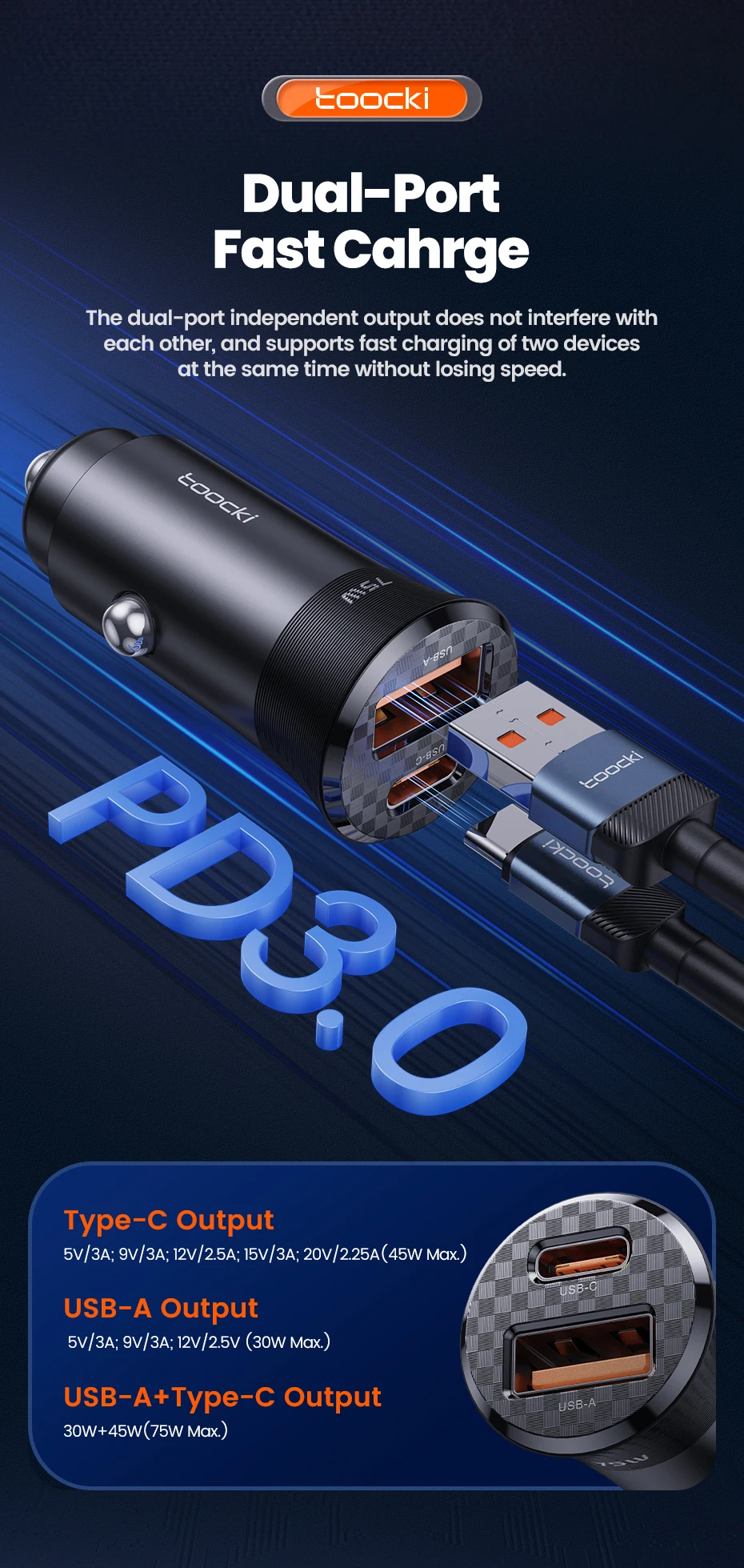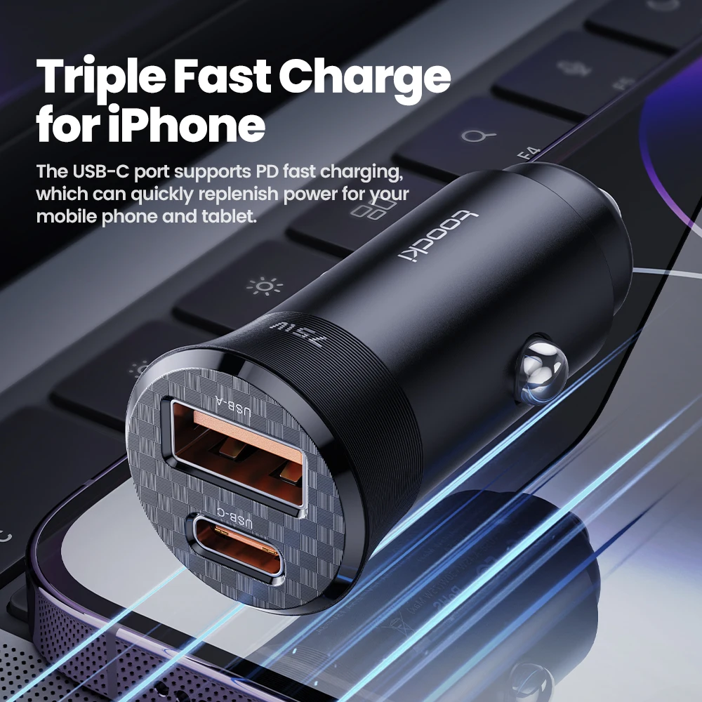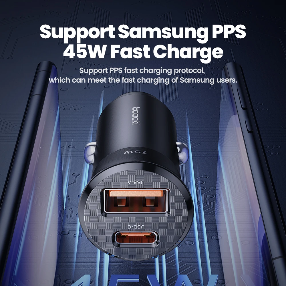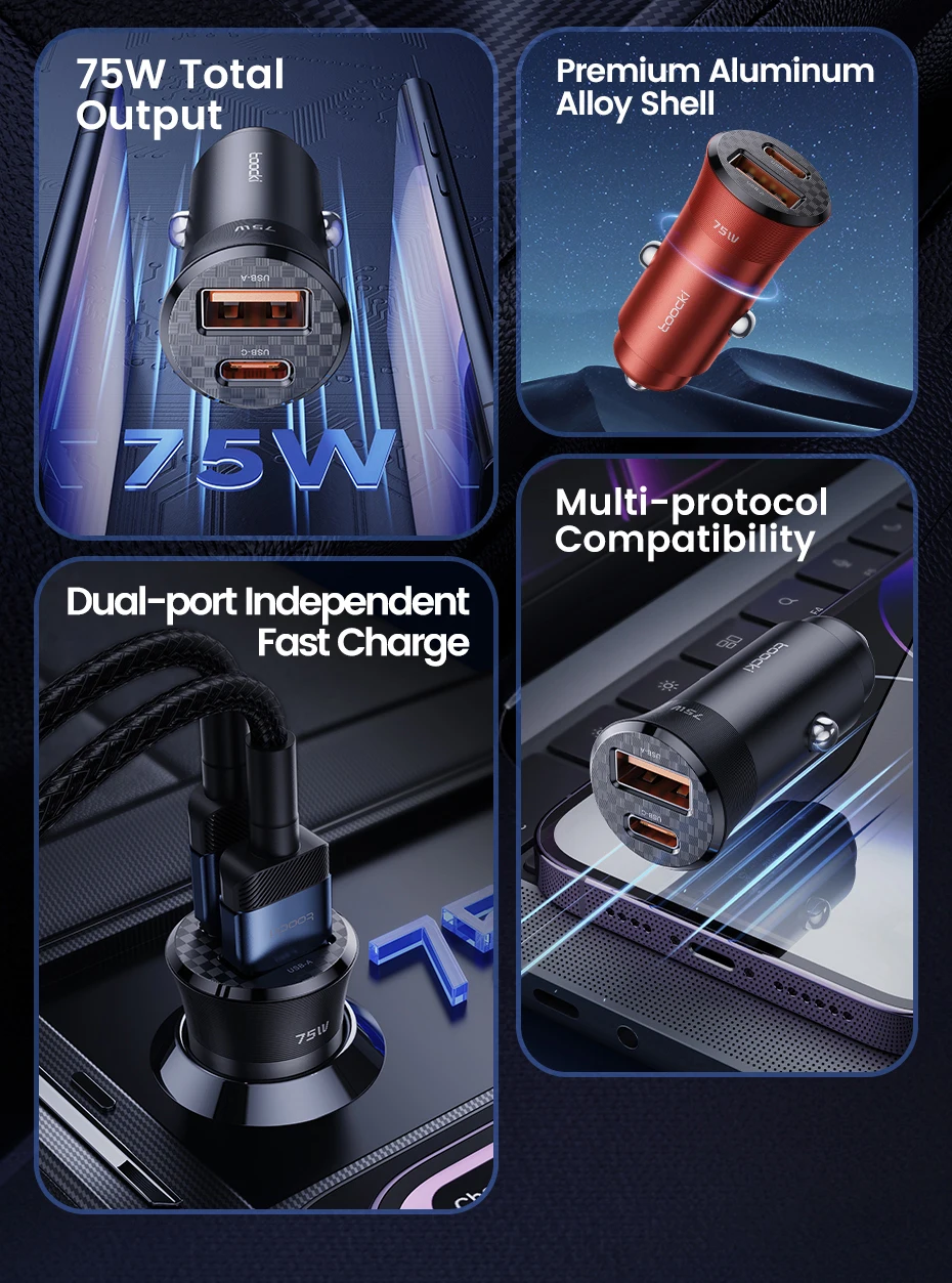 Comprar Toocki-cargador USB para coche, dispositivo de carga rápida de 75W, QC 3,0 PD 3,0 PPS tipo C, para iPhone, Xiaomi, Huawei, Samsung PD 75W