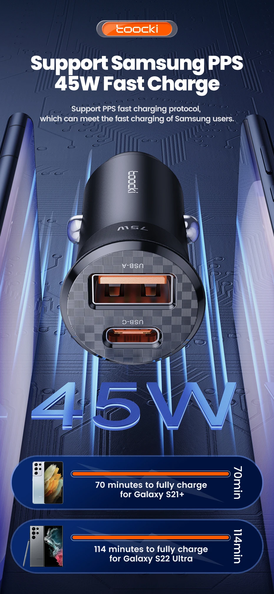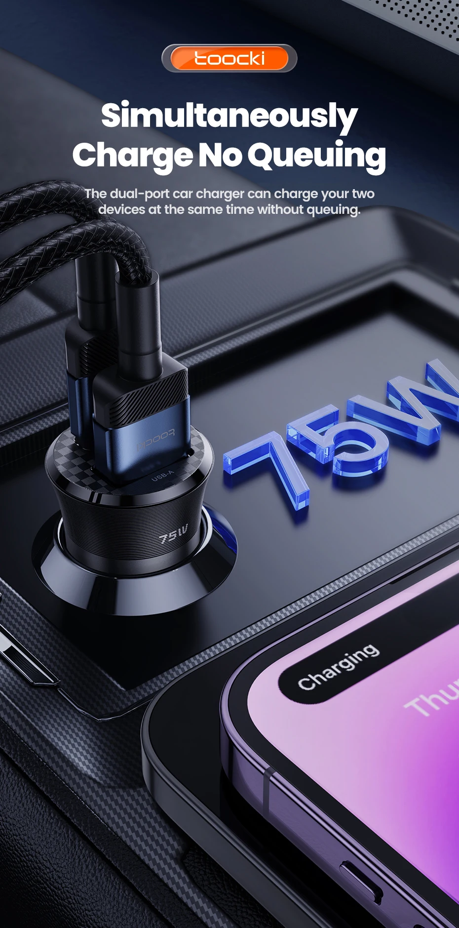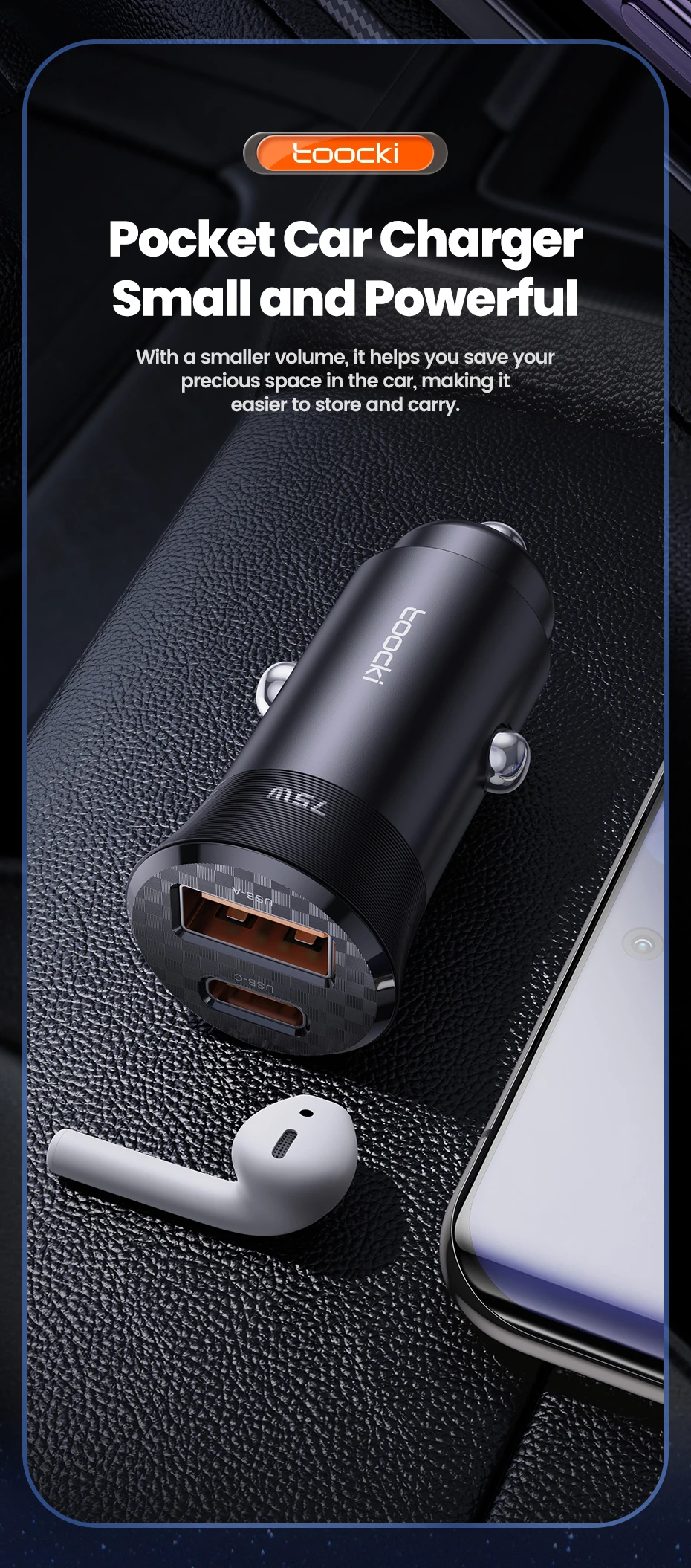 Comprar Toocki-cargador USB para coche, dispositivo de carga rápida de 75W, QC 3,0 PD 3,0 PPS tipo C, para iPhone, Xiaomi, Huawei, Samsung PD 75W