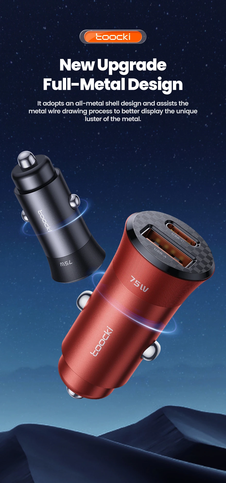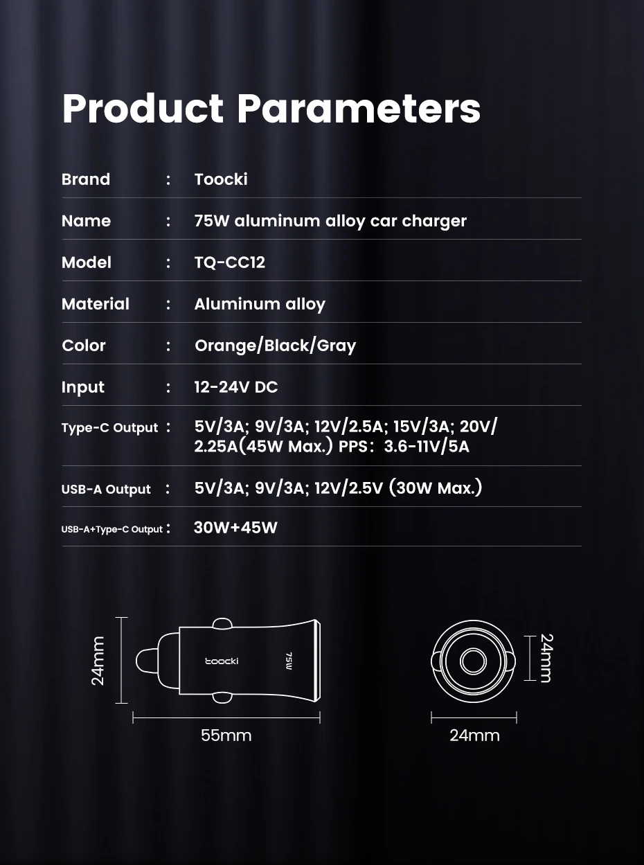Nombre: Cargador de coche de aleación de aluminio de 75W