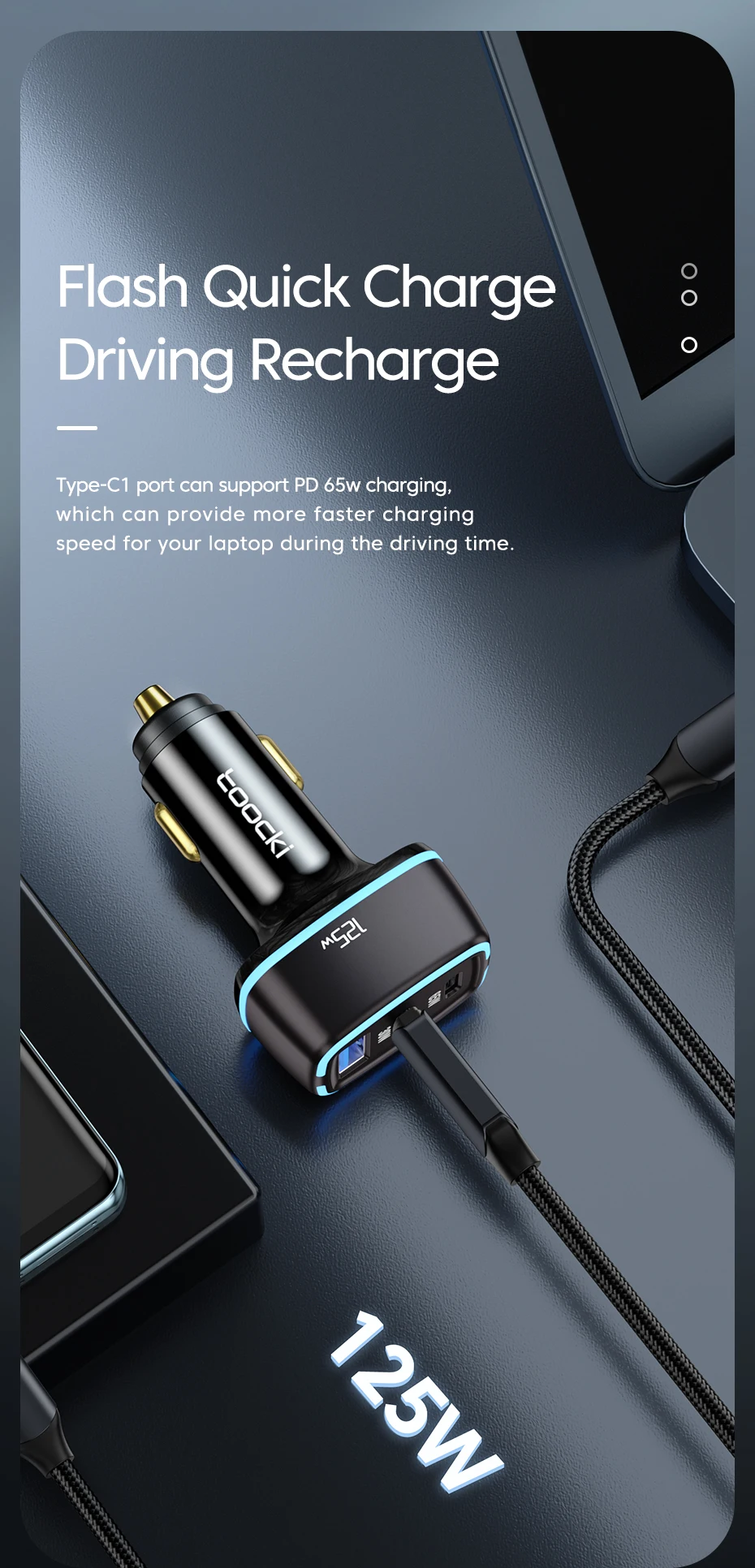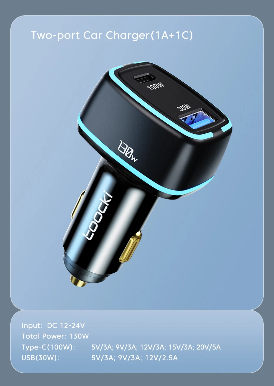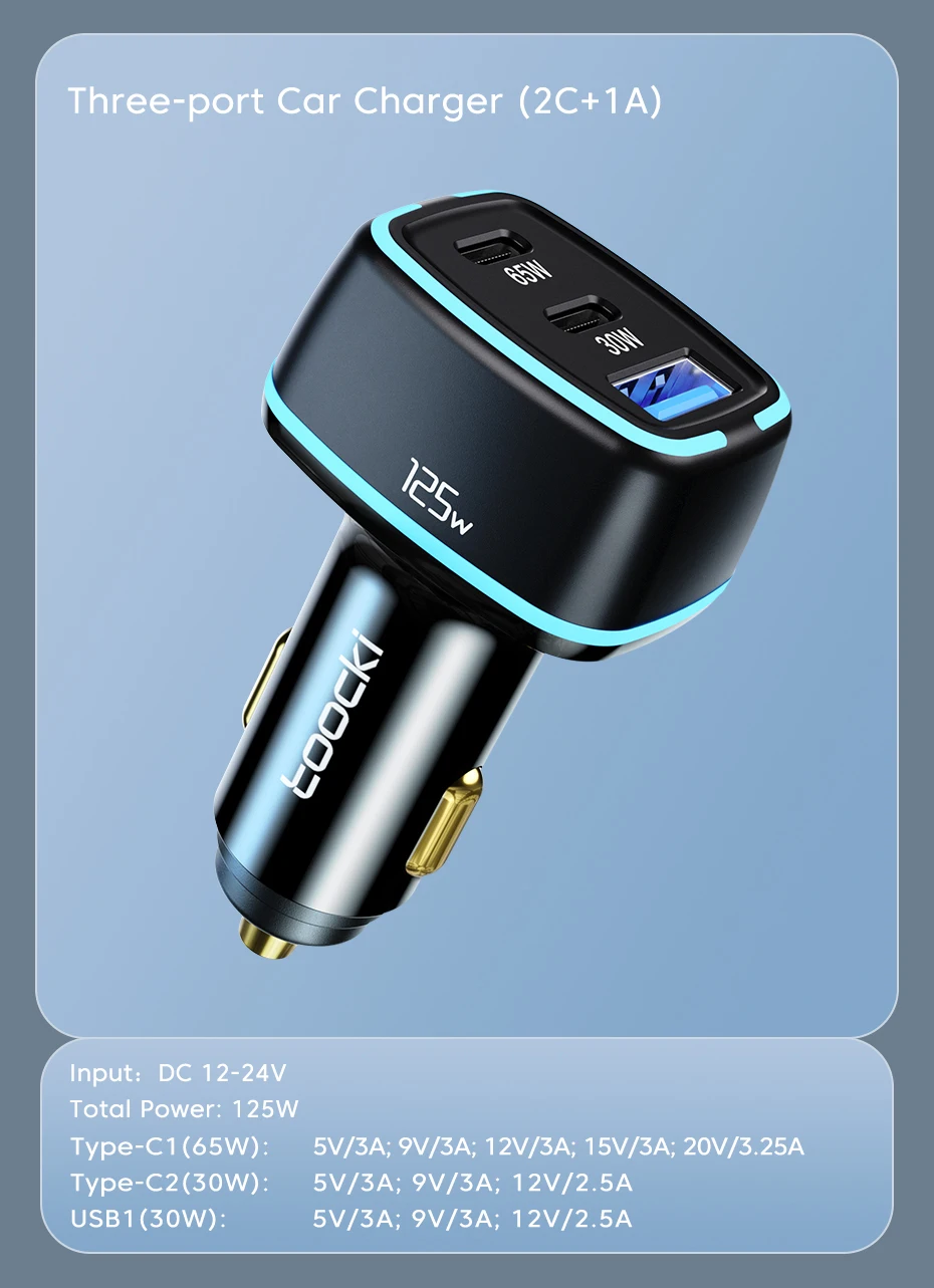 Comprar Toocki-cargador USB tipo C para coche, dispositivo de carga rápida de 125W, QC3.0, PD3.0, PPS, para iPhone, Samsung, Xiaomi, Macbook y ordenador portátil