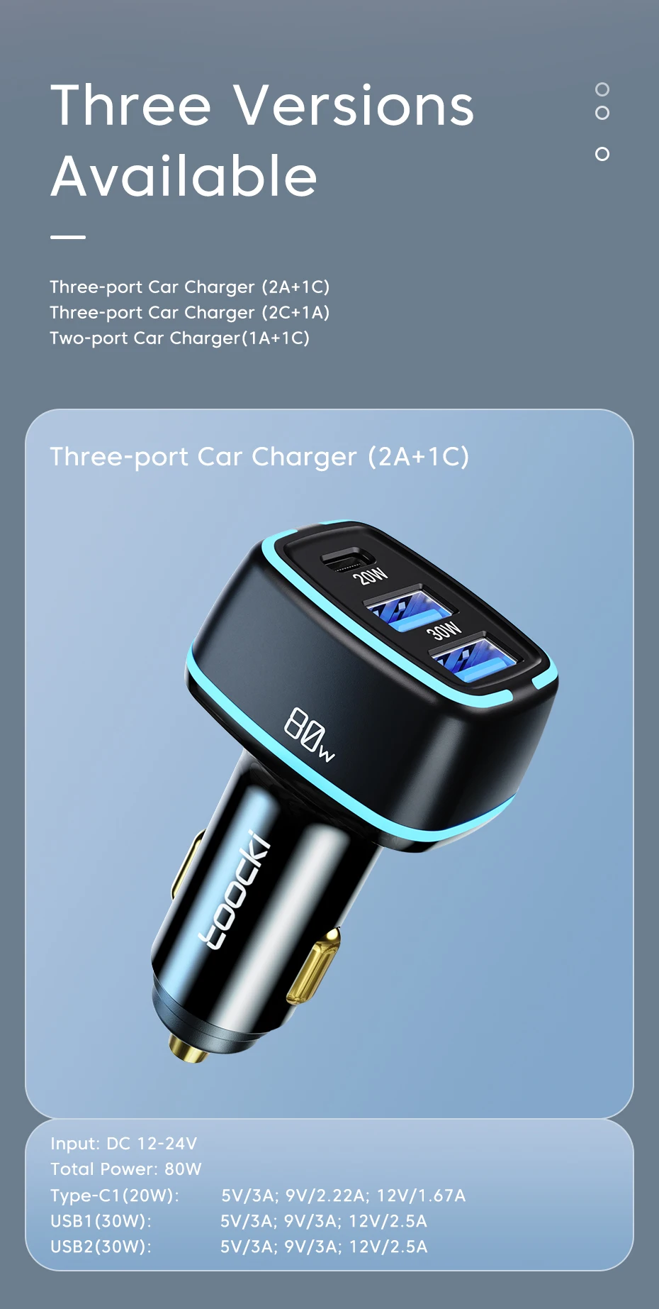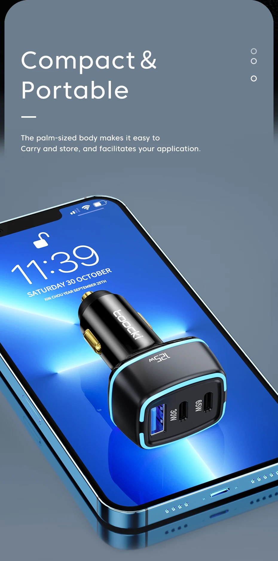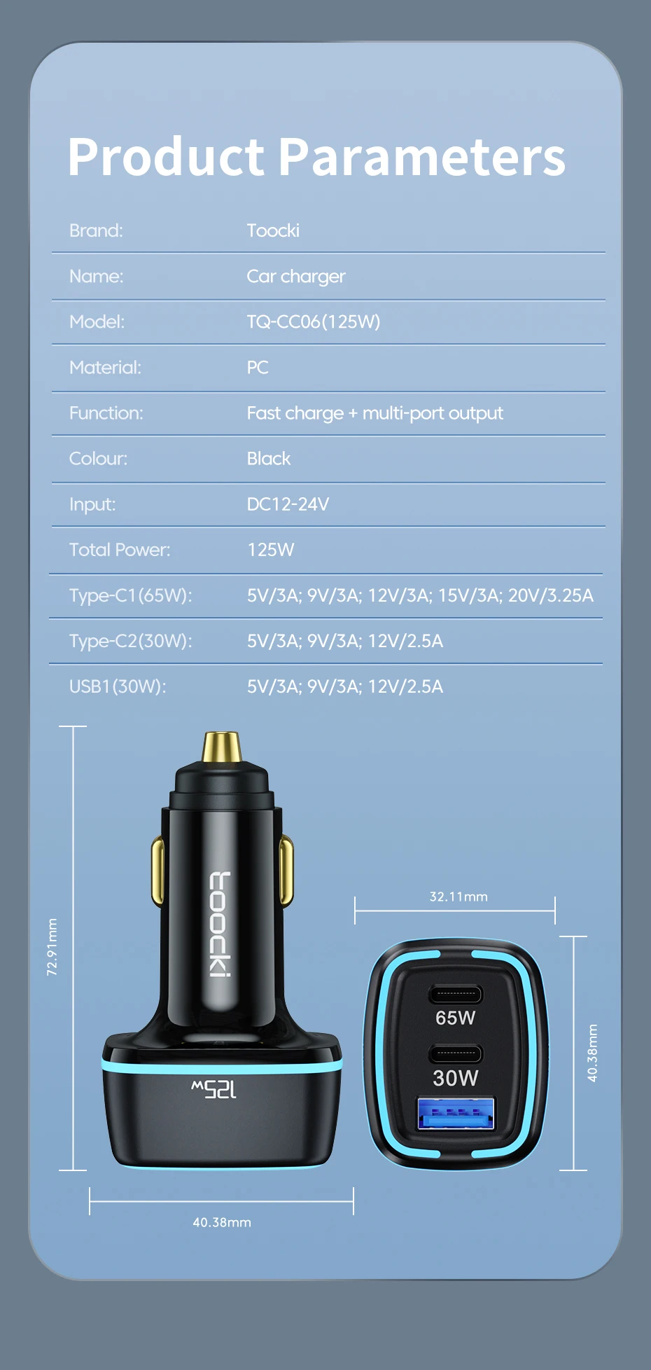 Comprar Toocki-cargador USB tipo C para coche, dispositivo de carga rápida de 125W, QC3.0, PD3.0, PPS, para iPhone, Samsung, Xiaomi, Macbook y ordenador portátil