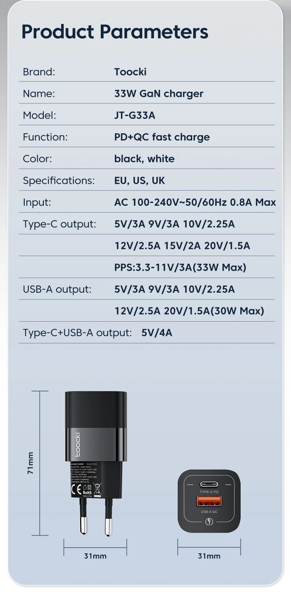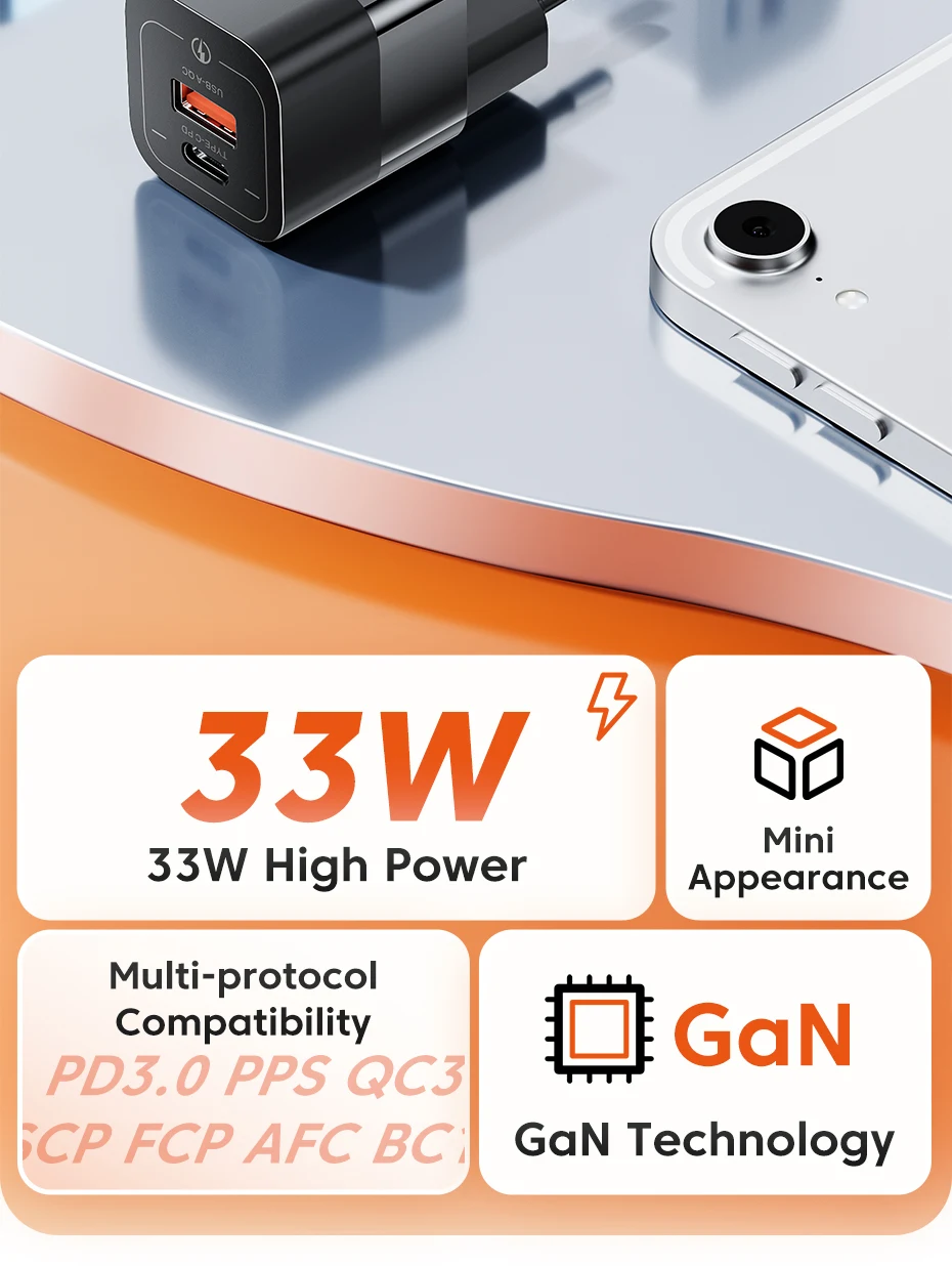 Nombre: GaN 33W USB C cargador PD carga rápida