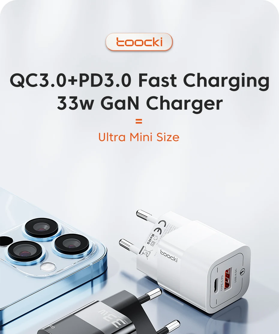 Comprar Toocki-cargador USB tipo C para teléfono móvil, dispositivo de carga rápida GaN de 33W para iPhone, Xiaomi, POCO, Huawei, Samsung S22