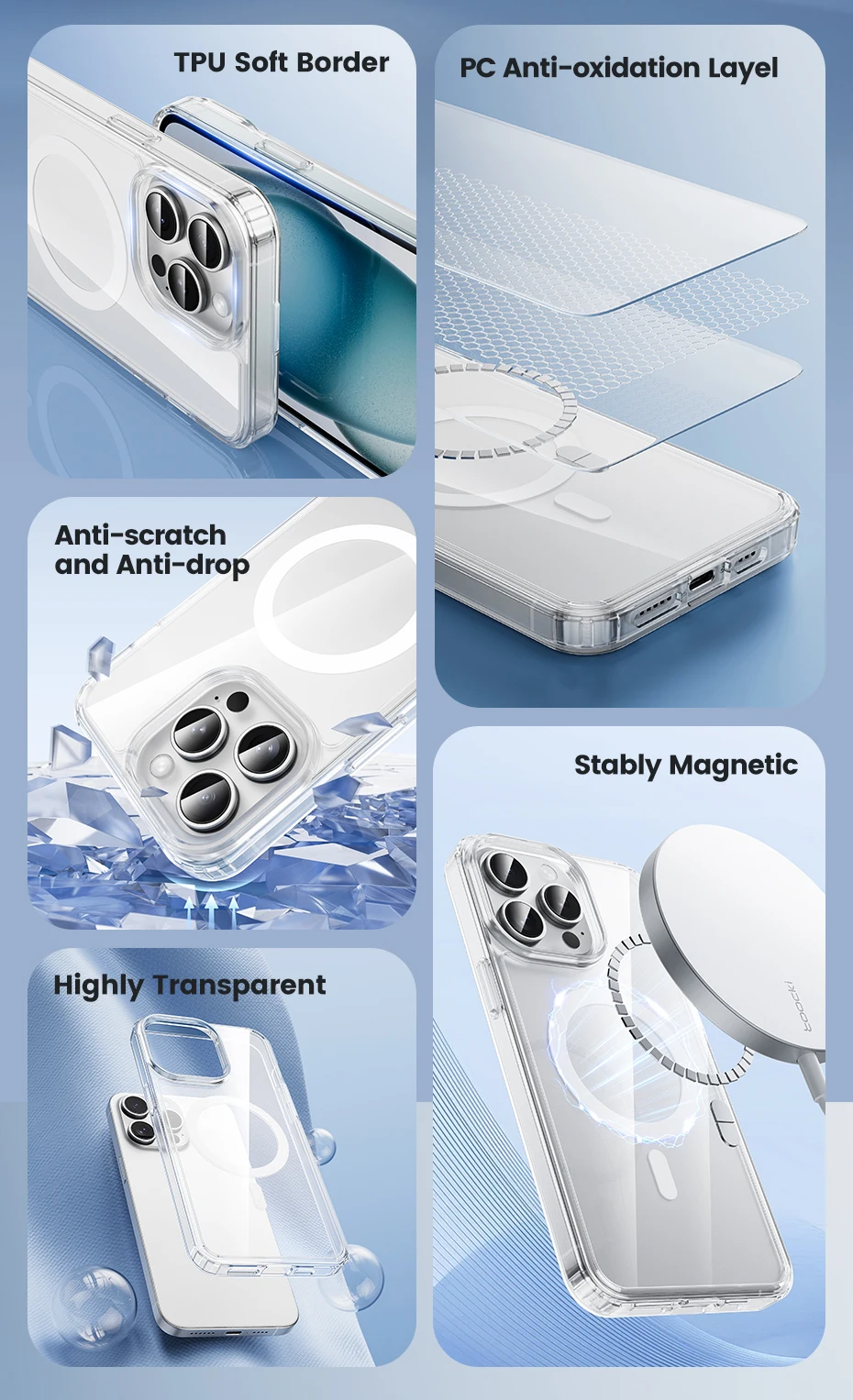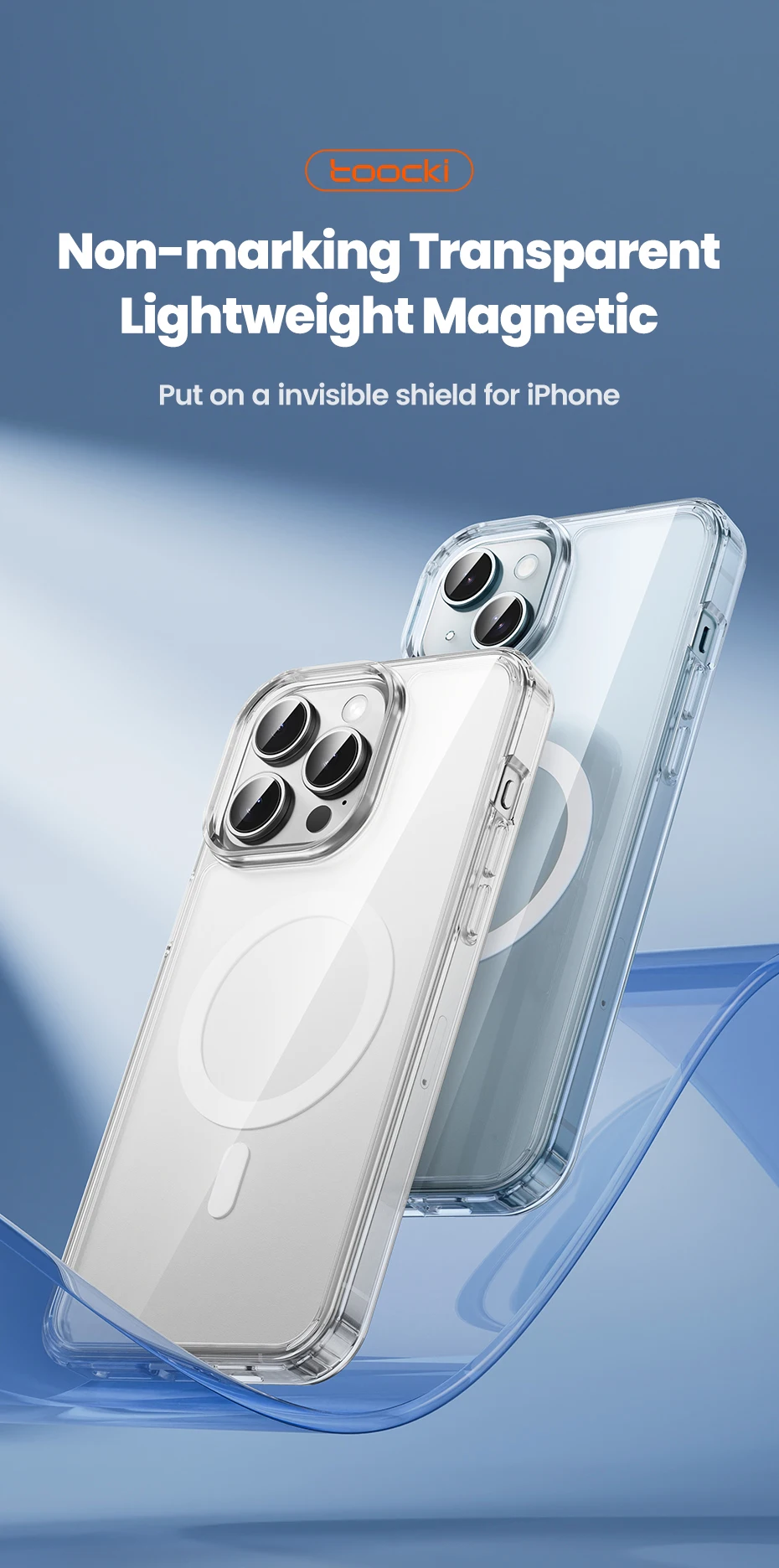 Comprar Toocki-funda de teléfono magnética transparente para iPhone 15 14 Plus, TPU, PC, antioxidación, Airbag, anticaída, iPhone 13 Pro Max