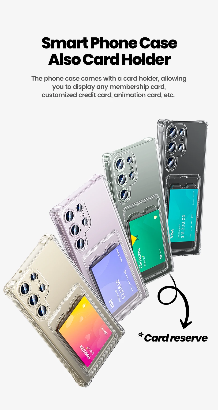 ✅Viene con tarjetero. La funda del teléfono viene con un tarjetero, lo que le permite mostrar cualquier tarjeta de membresía, tarjeta de crédito personalizada, tarjeta de animación, etc.