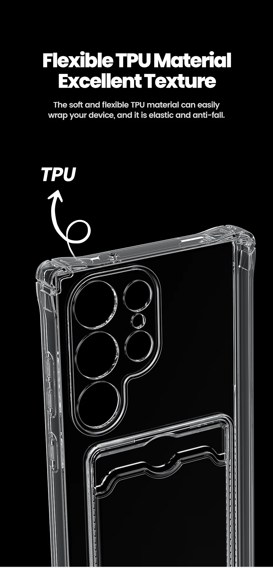 ✅Material de TPU flexible, el material de TPU suave y flexible puede envolver fácilmente su dispositivo, es elástico y anticaída.