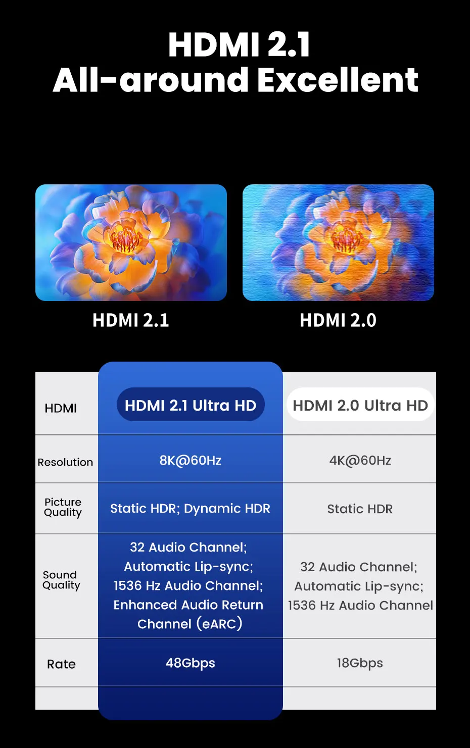 ✅Amplia compatibilidad para HDMI 2.1/2.0/1.4