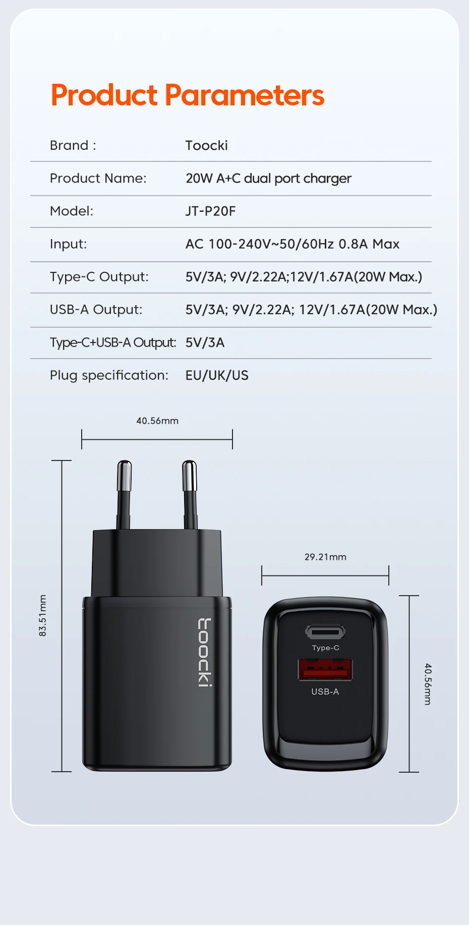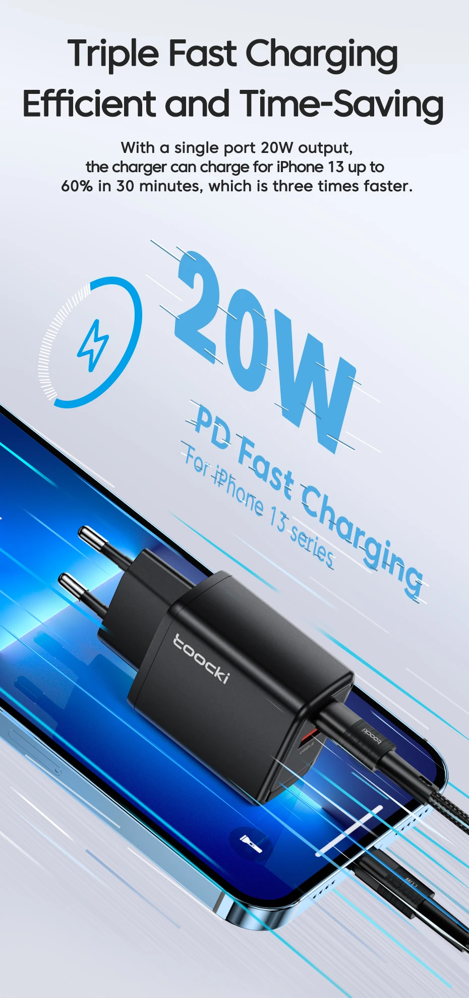 Comprar Toocki-Mini cargador USB de 20W, carga rápida tipo C, QC3.0, PD, para iPhone 15, 14, 13, 12 Pro Max, Xiaomi, Samsung