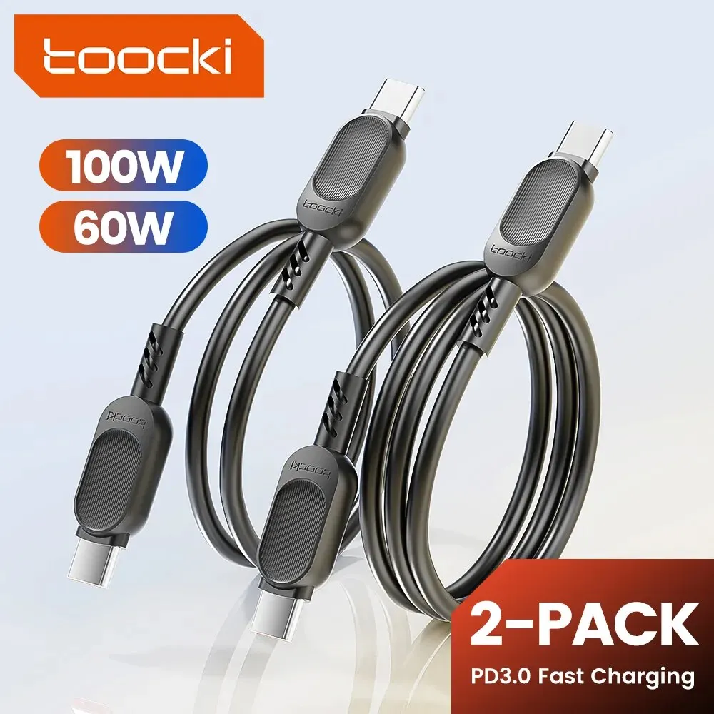 Comprar Toocki-Paquete de 2 cables USB C a USB C, 100W, PD 3,0, carga rápida 4,0, tipo C a tipo C, 60W, para iPhone 15, Macbook, Samsung y Xiaomi